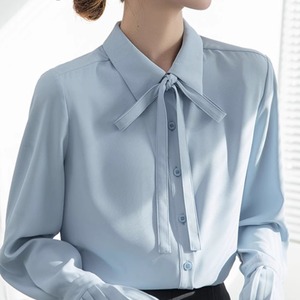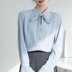 Pleated flare-sleeve bowtie shirt A1539