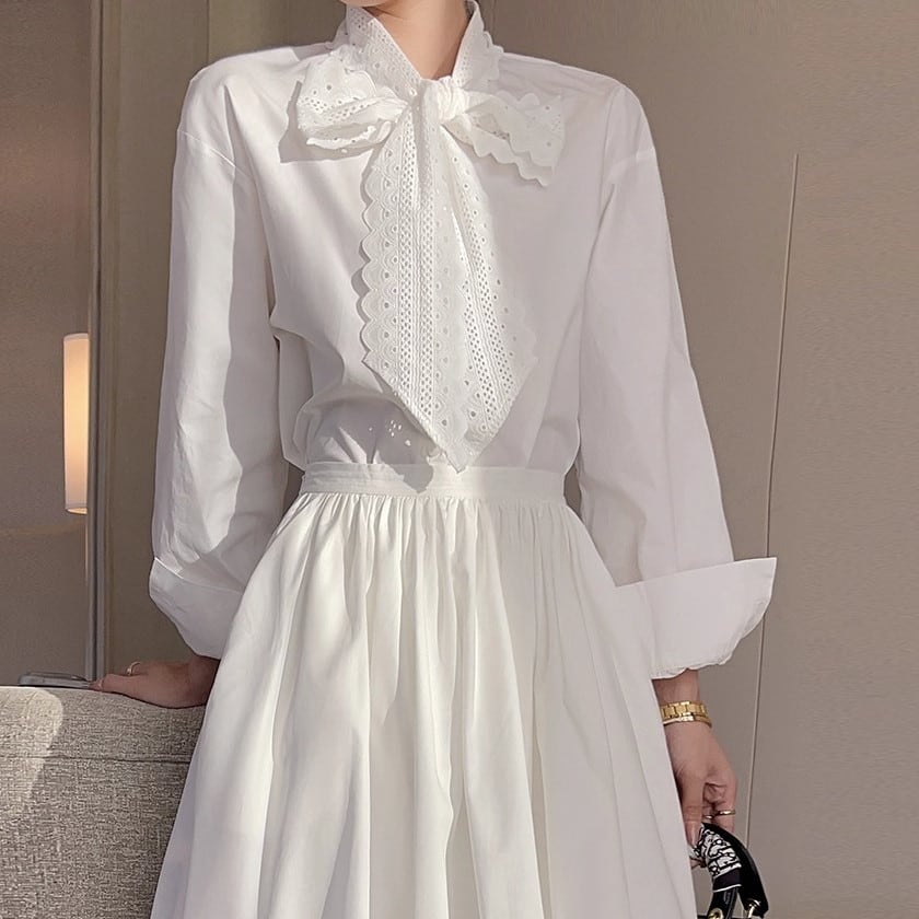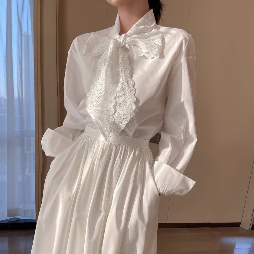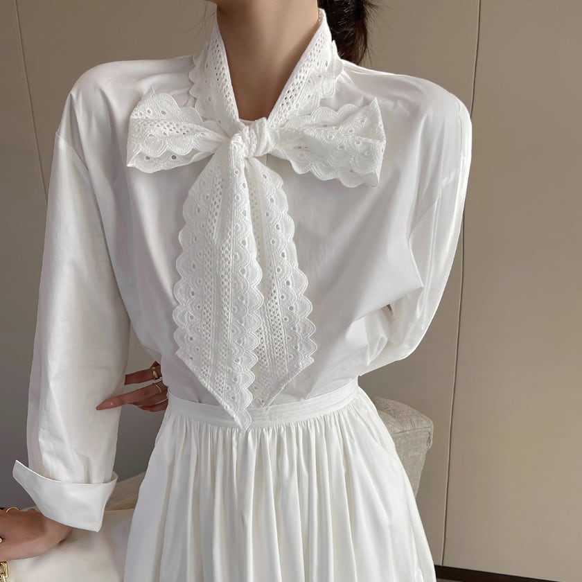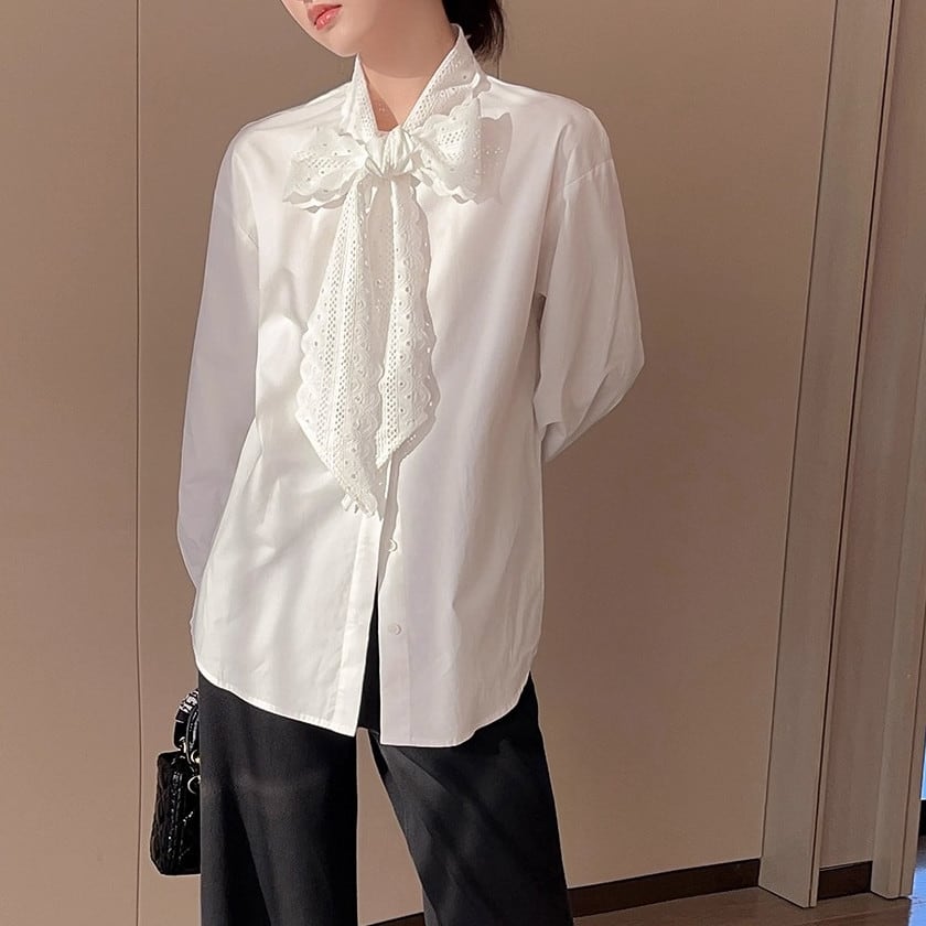 Lace bowtie shirt A1540