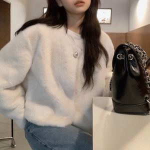 Pearl button faux fur short coat A1552