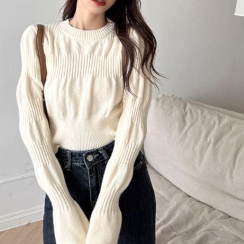 ボートネックパフスリーブニット