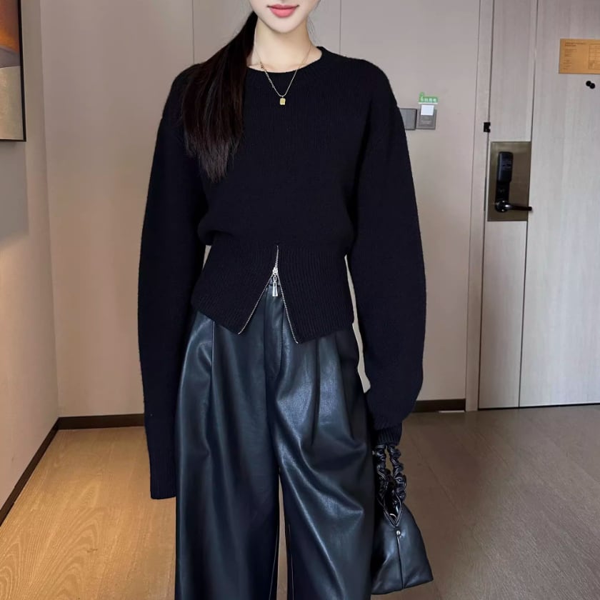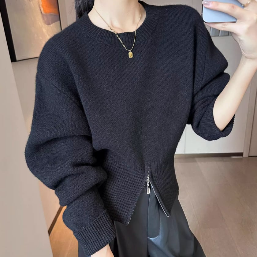 【即納Lサイズ1点入荷!】Hem slit zipper knit A1576