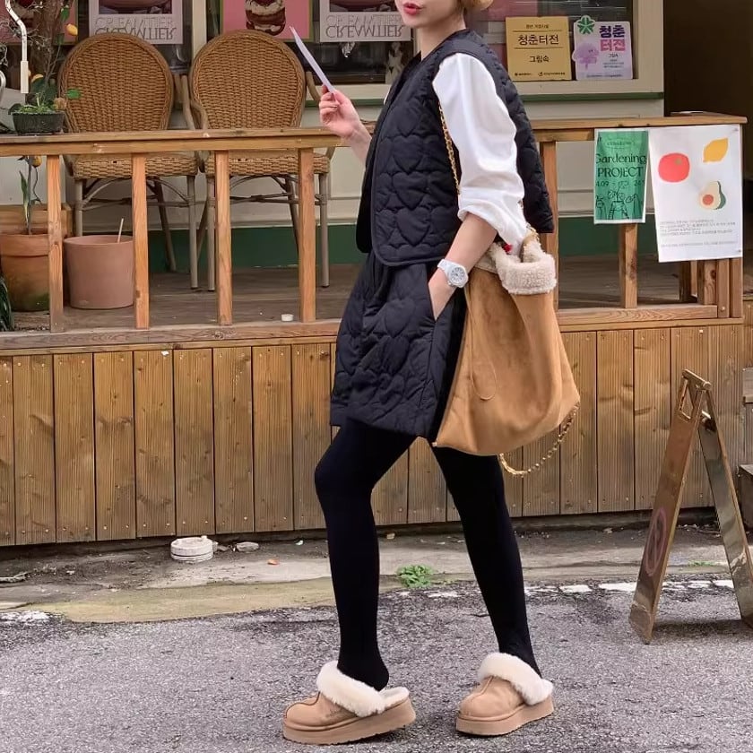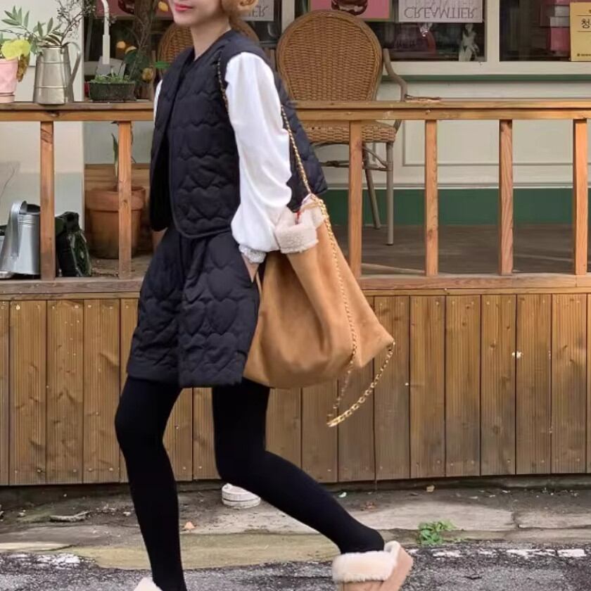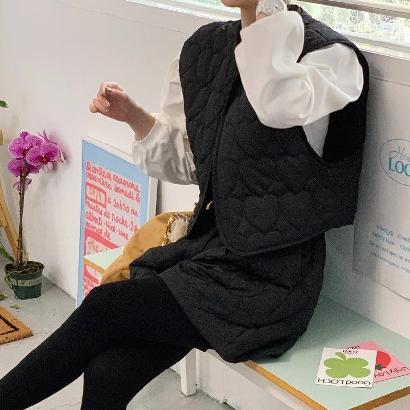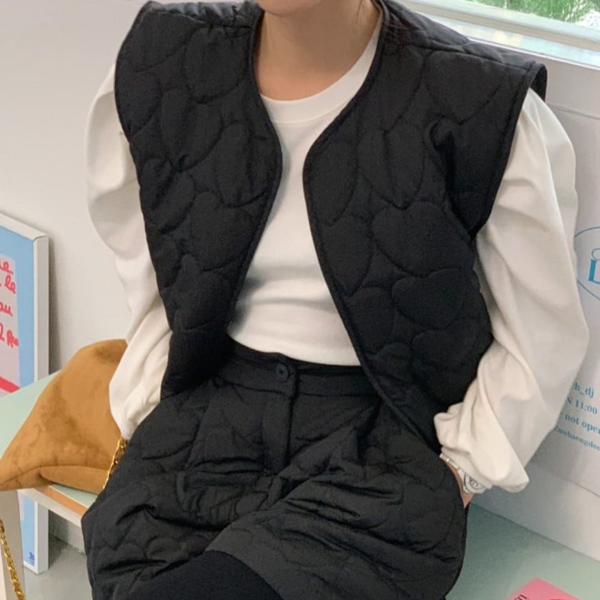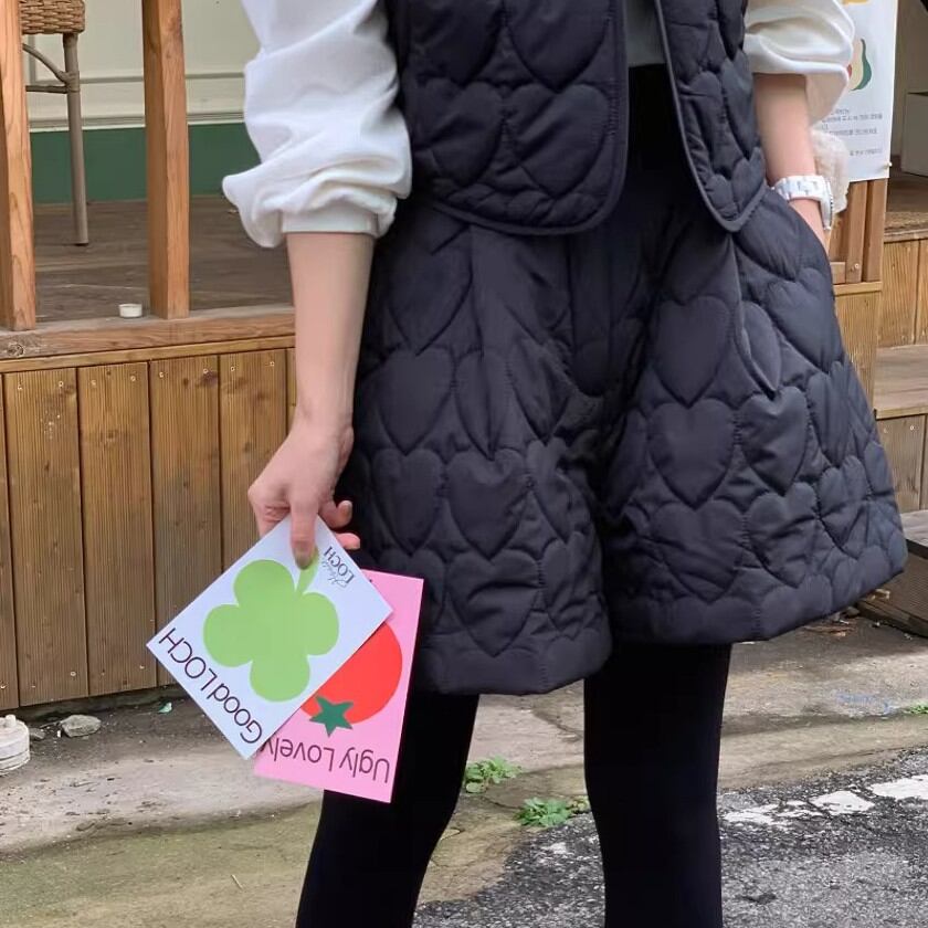 Heart quilting vest && short pants setup