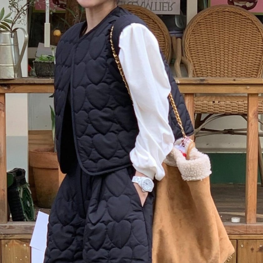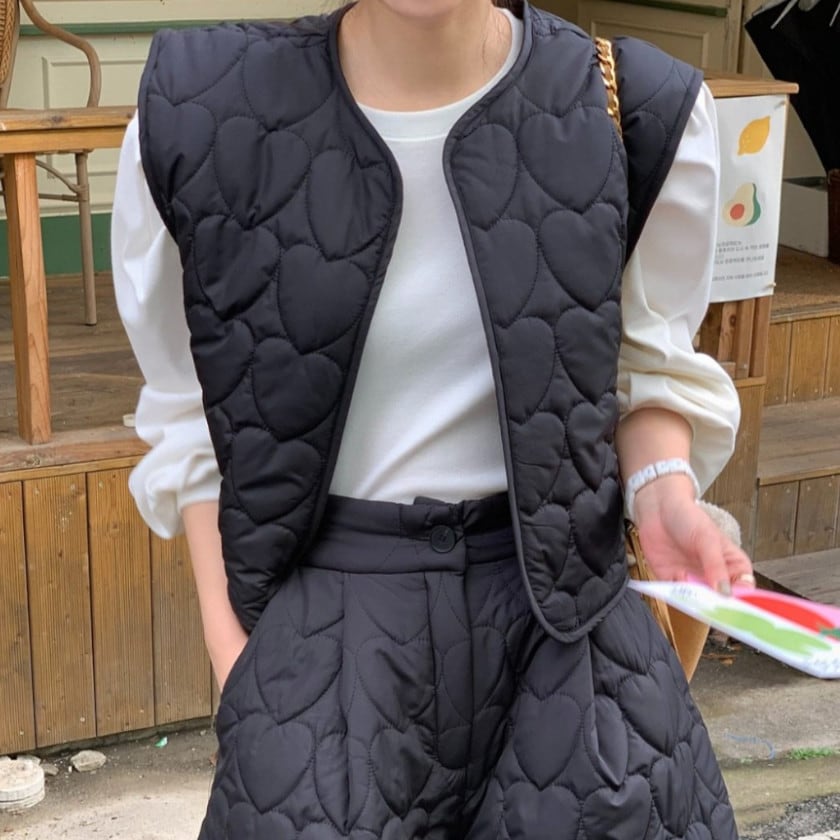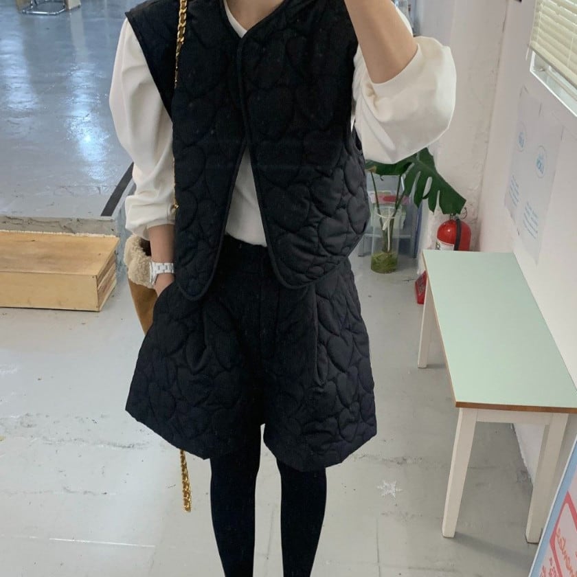 ハートキルティングベスト&ショートパンツセットアップ