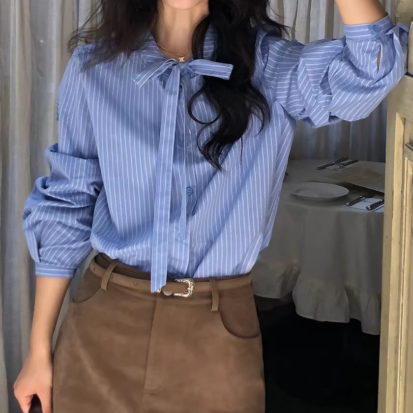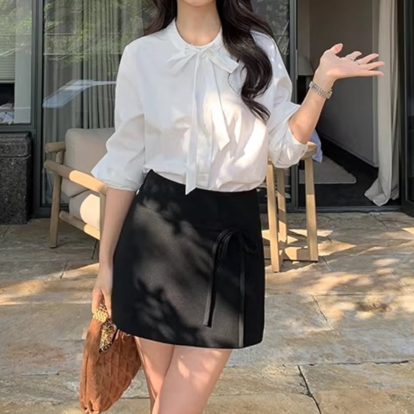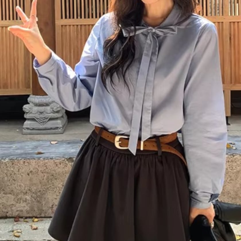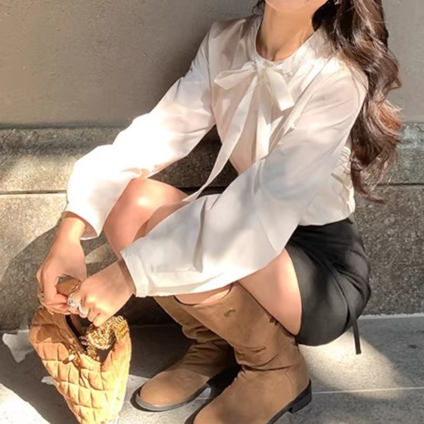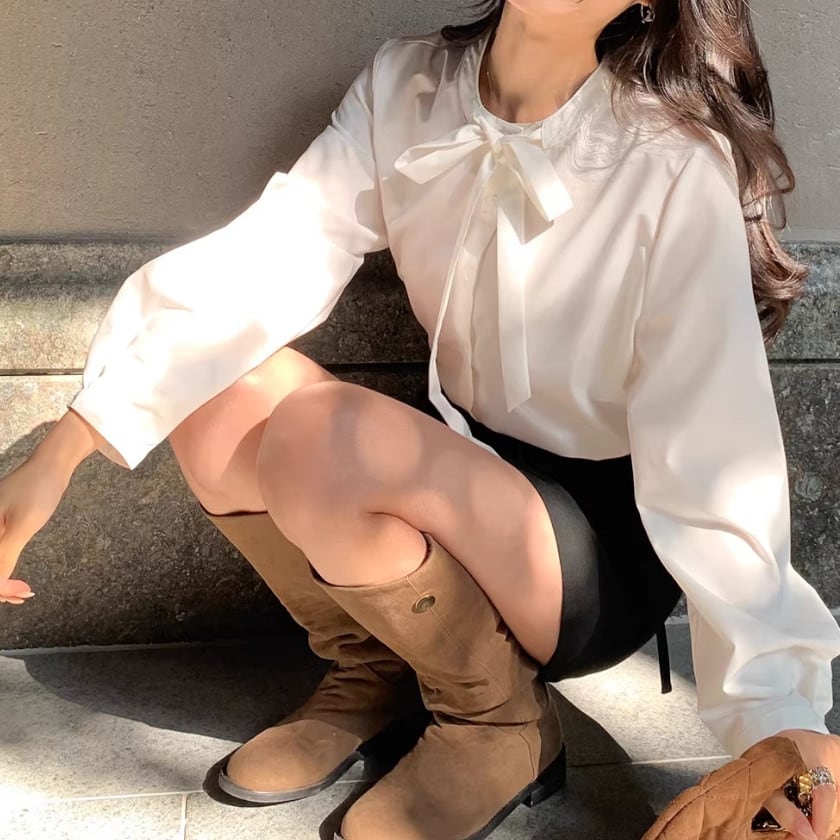 パフスリーブボウタイブラウス