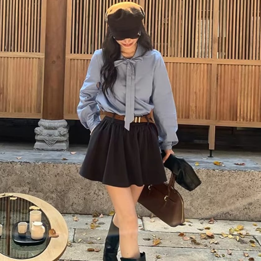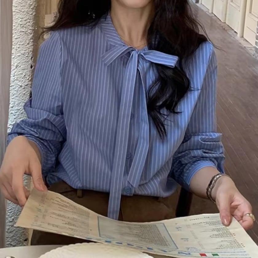 Puff sleeve bowtie blouse