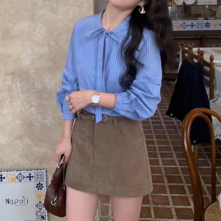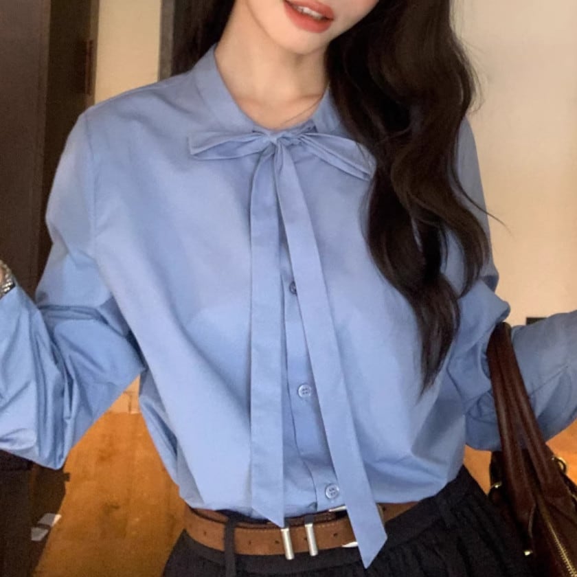 Puff sleeve bowtie blouse A1627
