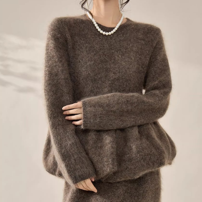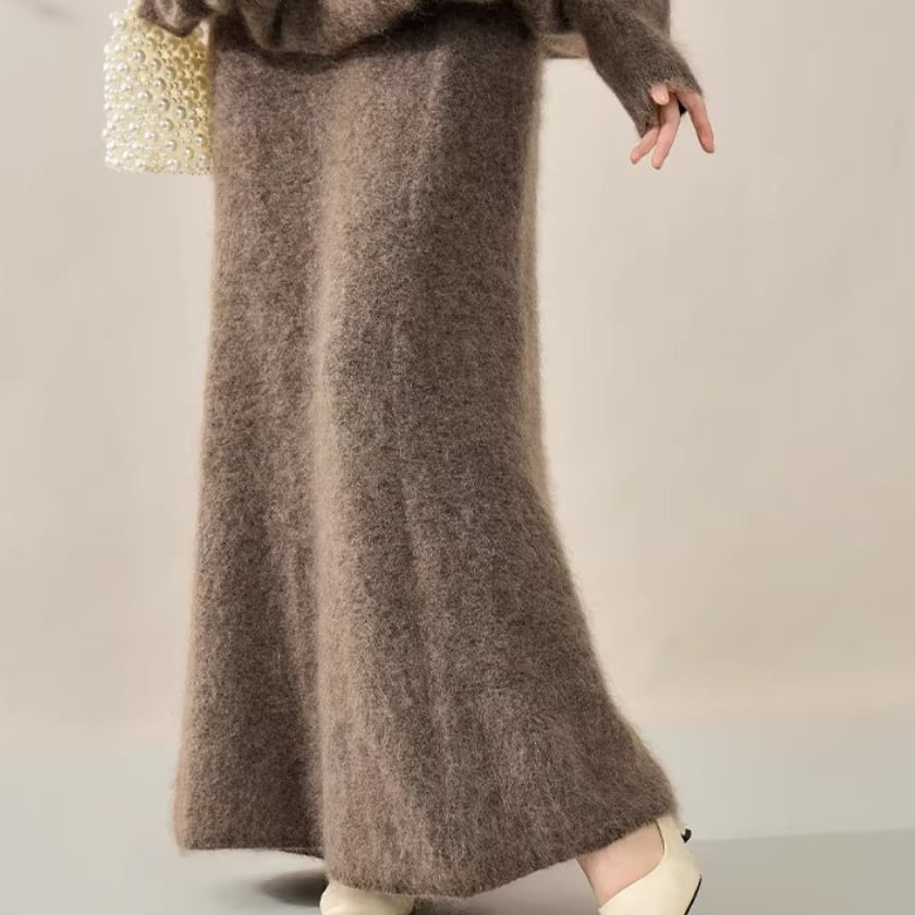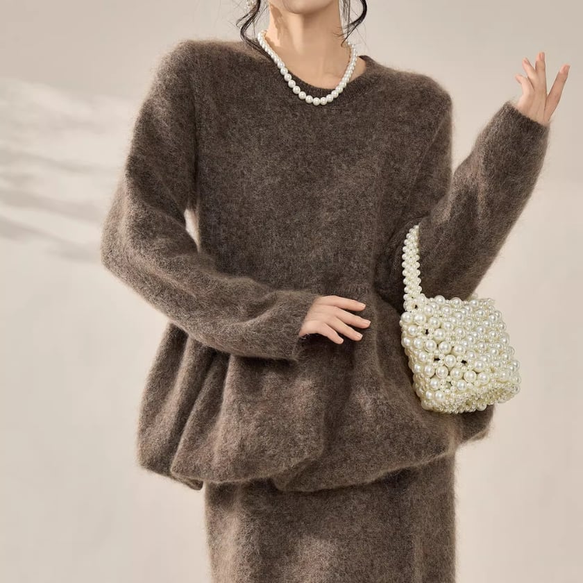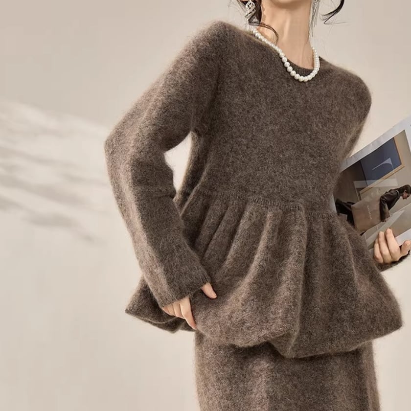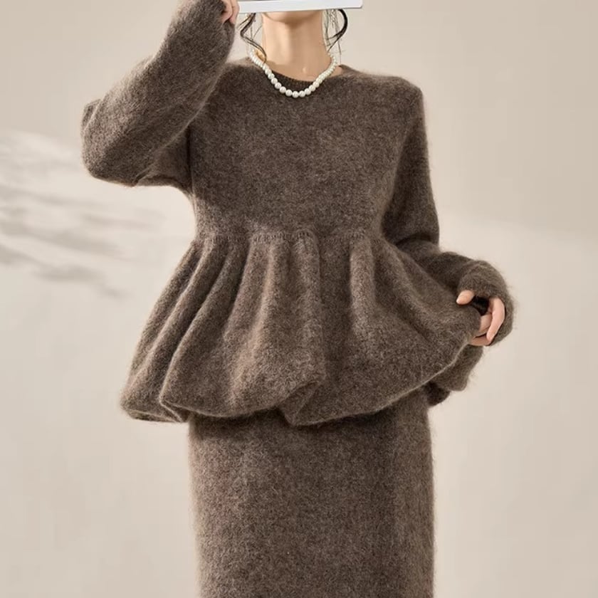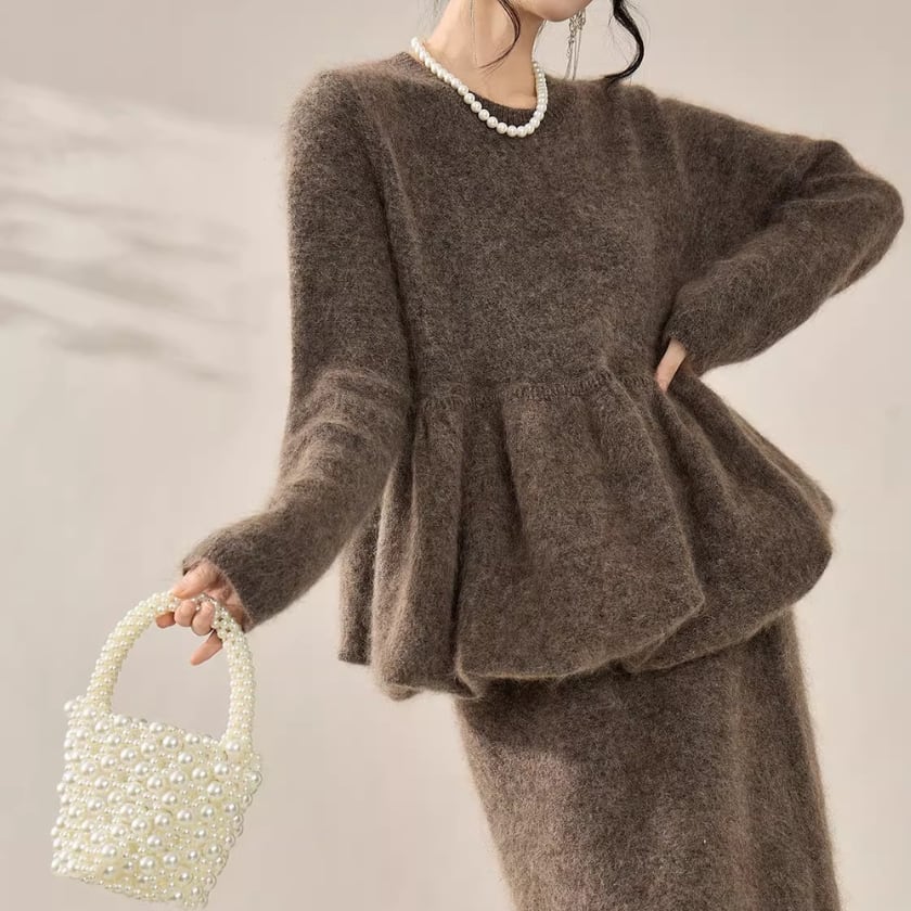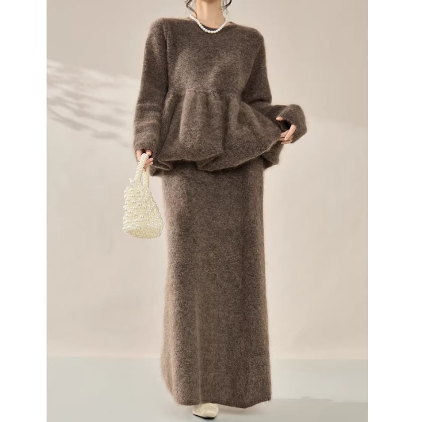 Peplum knit top & maxi knit skirt (セットアップ可)
