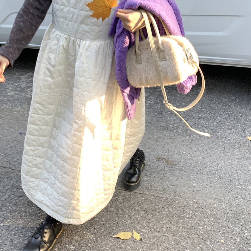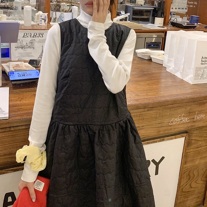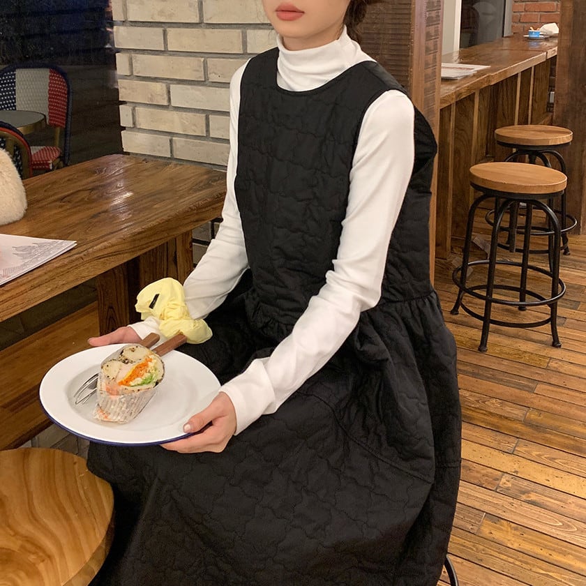 Back ribbon quilting jumper dress A1638