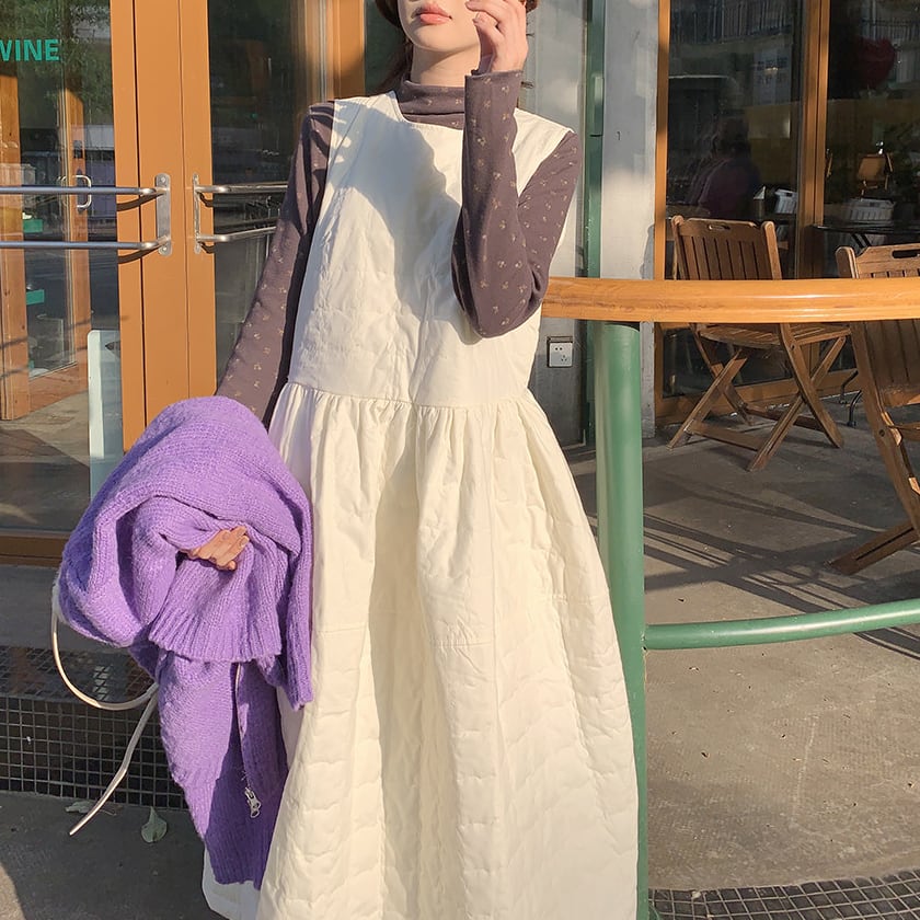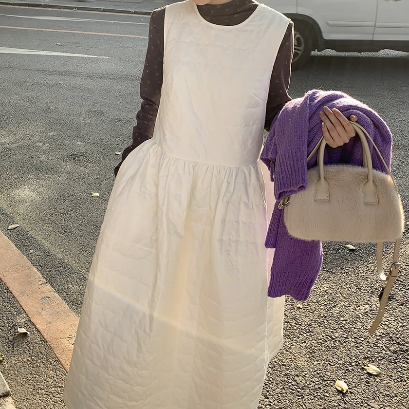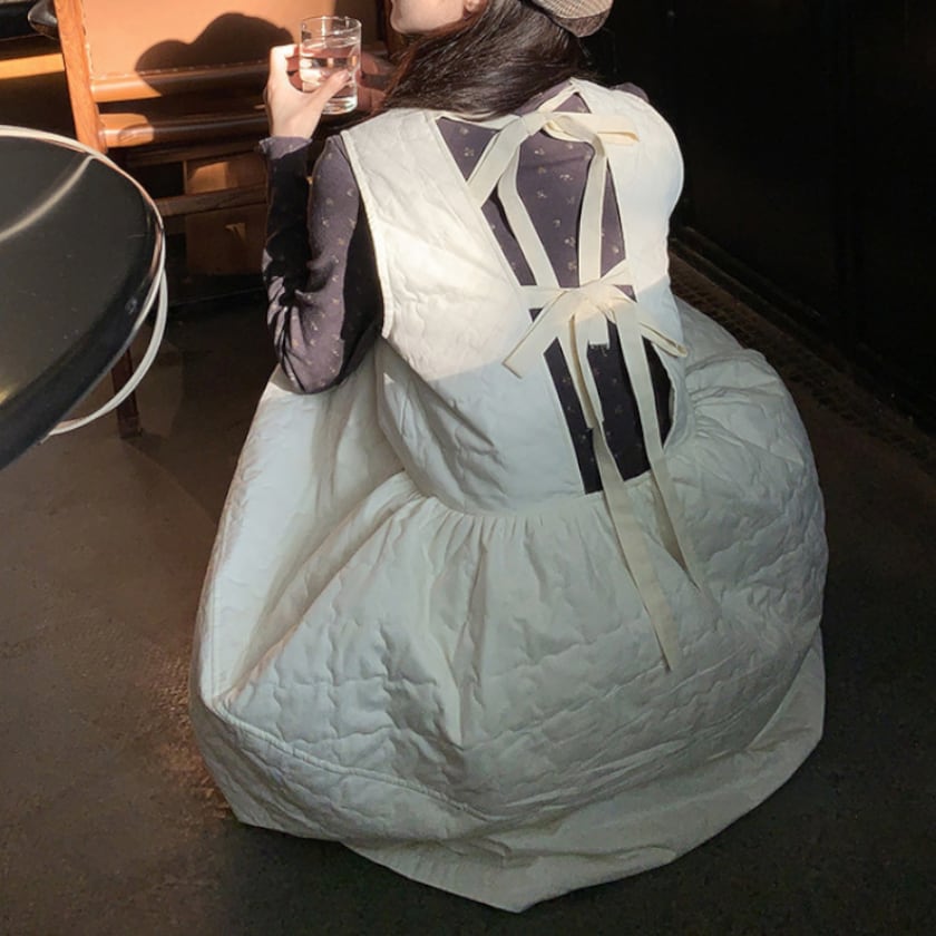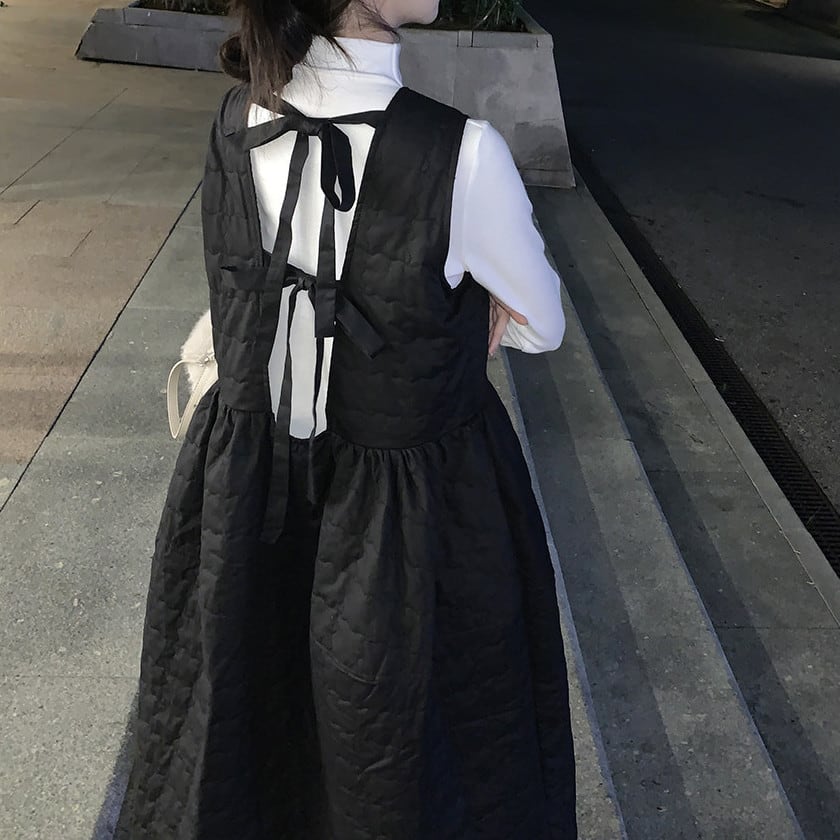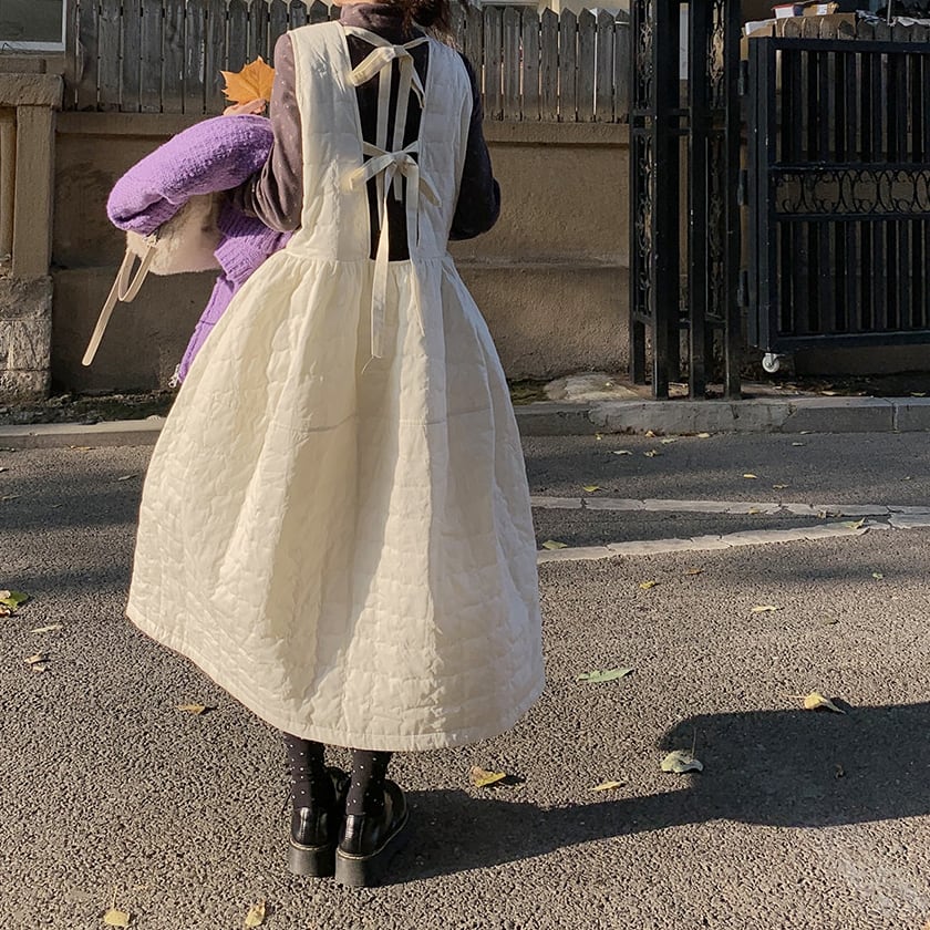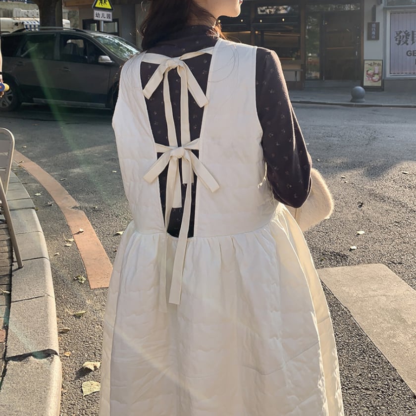 Back ribbon quilting jumper dress