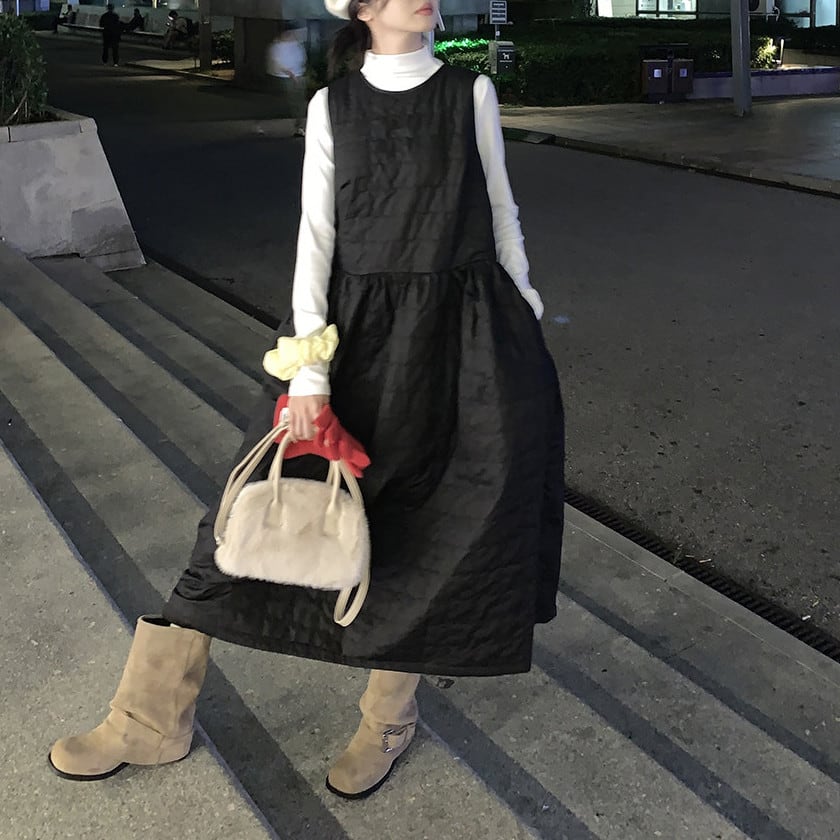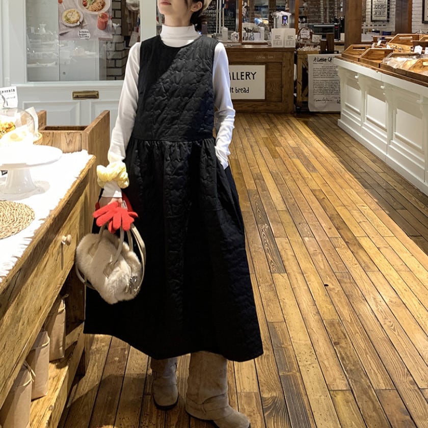 バックリボンキルティングジャンパードレス