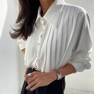【即納ホワイト1点入荷!】Pleated design shirt A1545