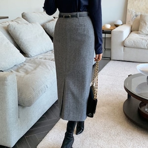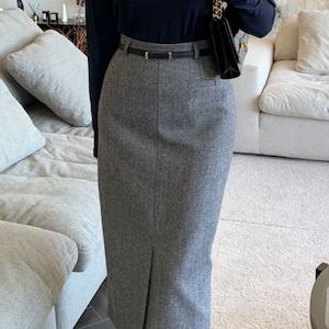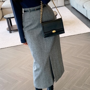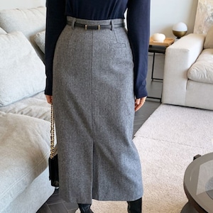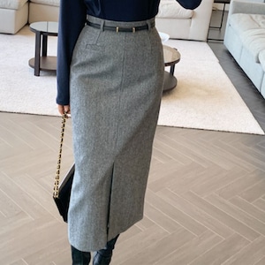 【即納グレーMサイズ1点入荷!】Front slit tweed pencil skirt A1597