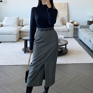 Front slit tweed pencil skirt