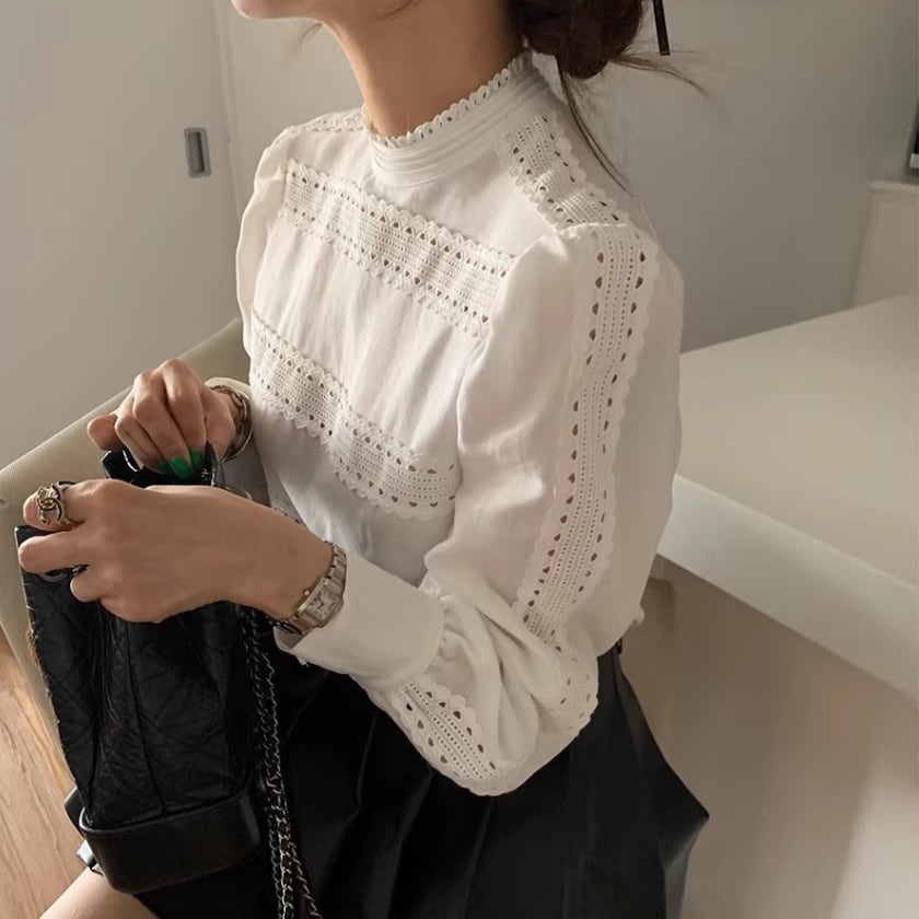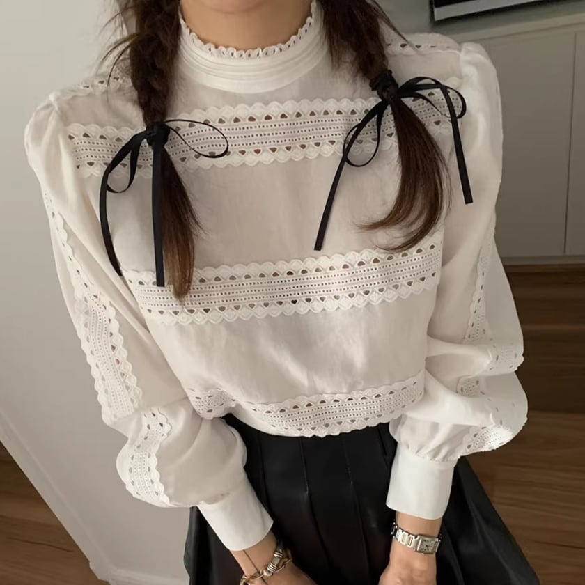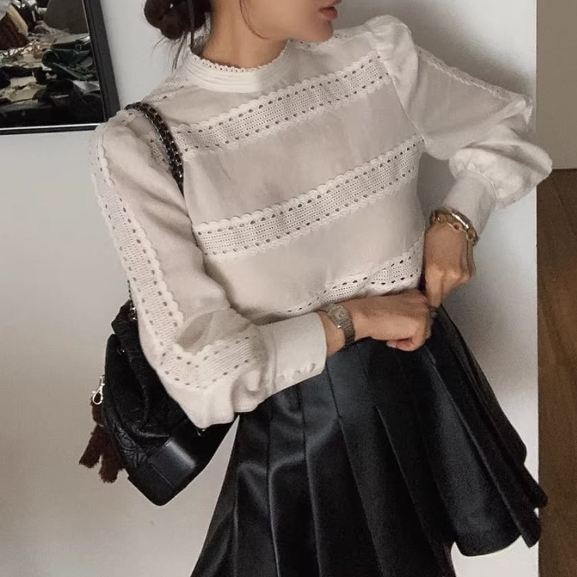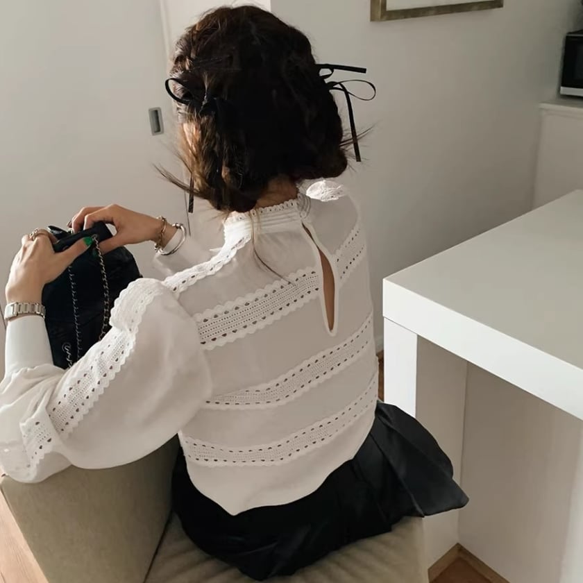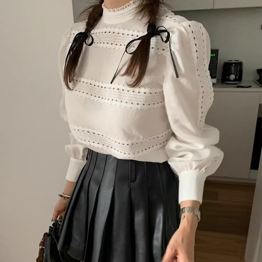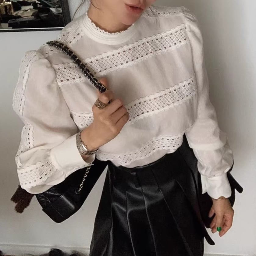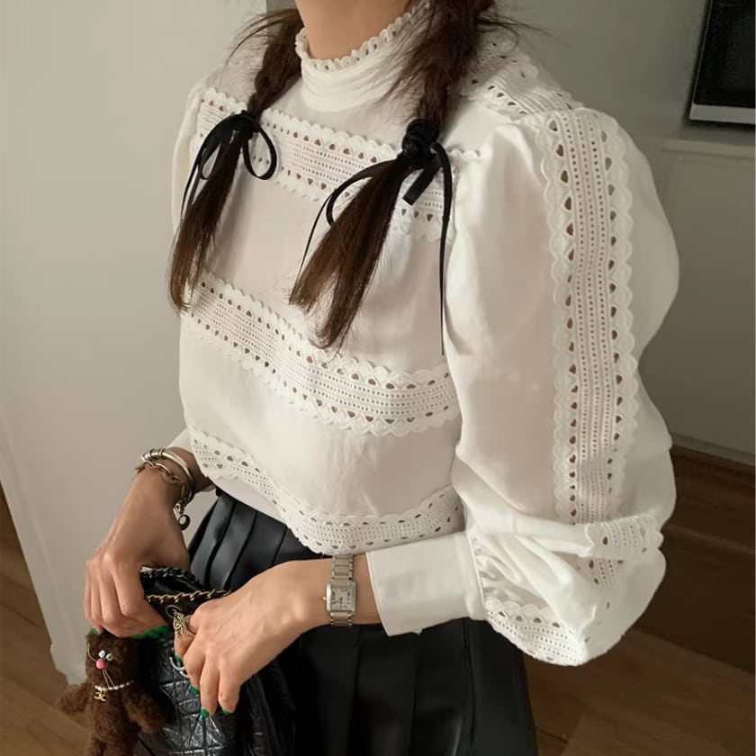 レーストリムパフスリーブシャツ