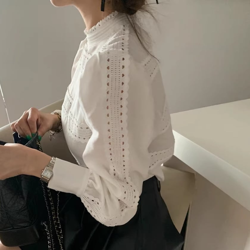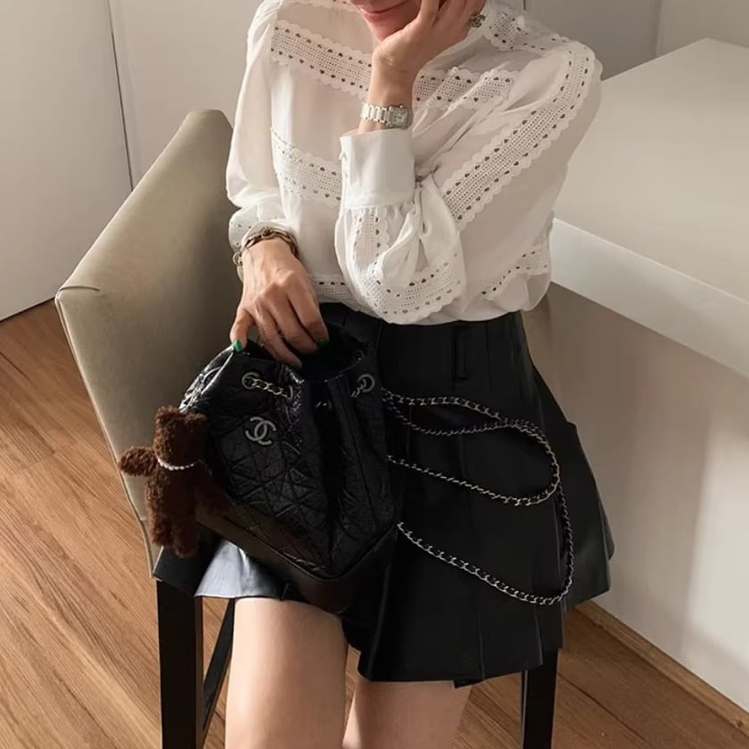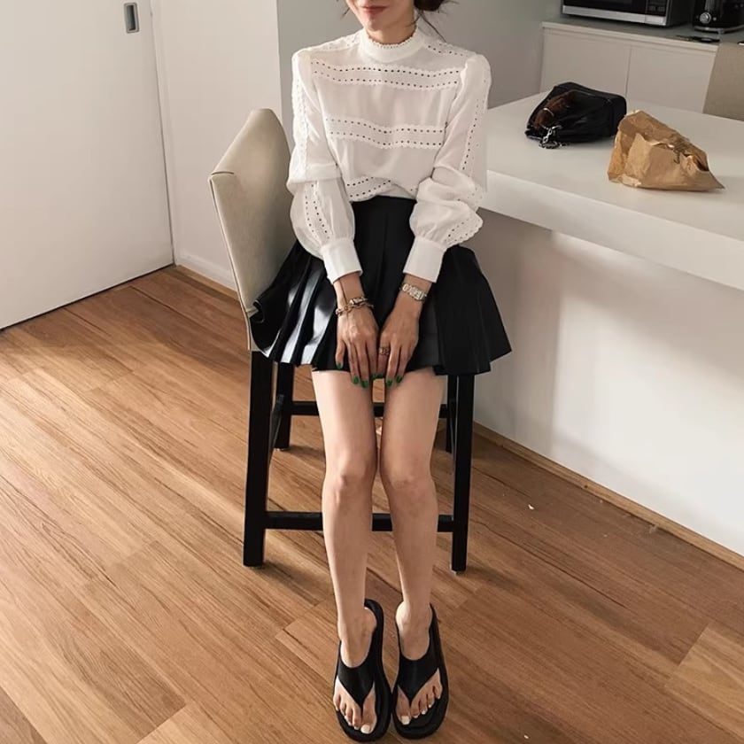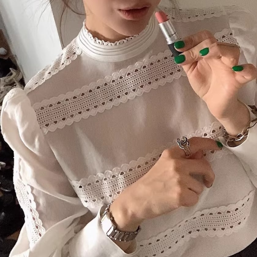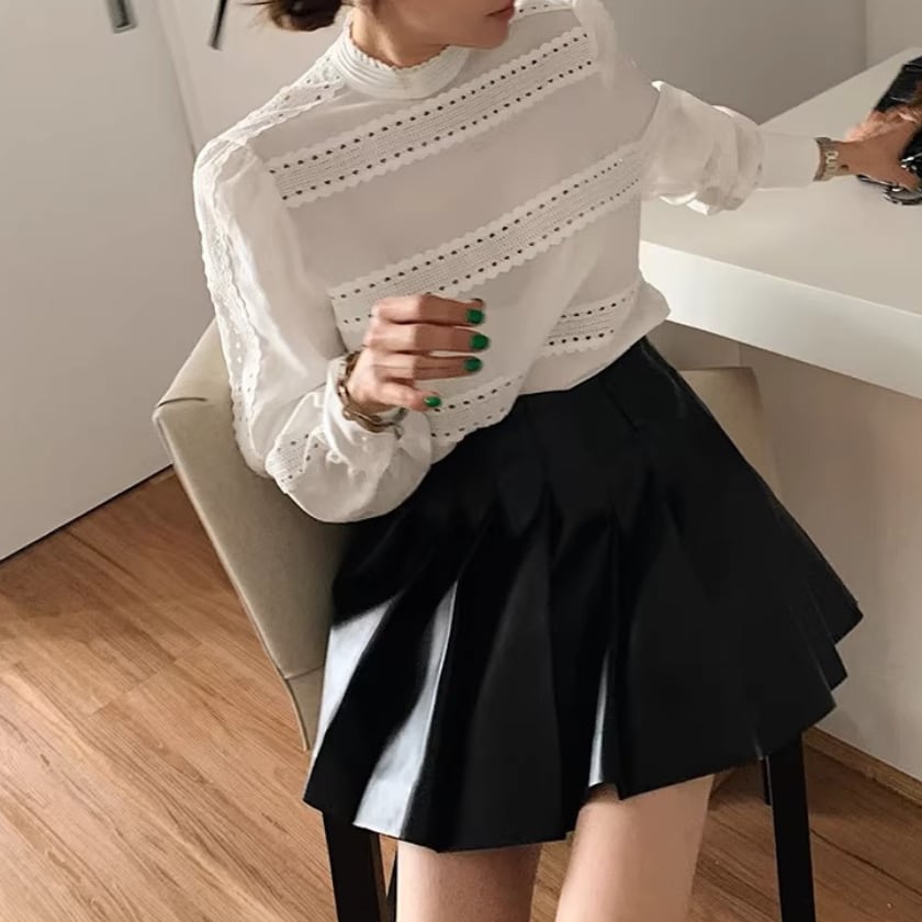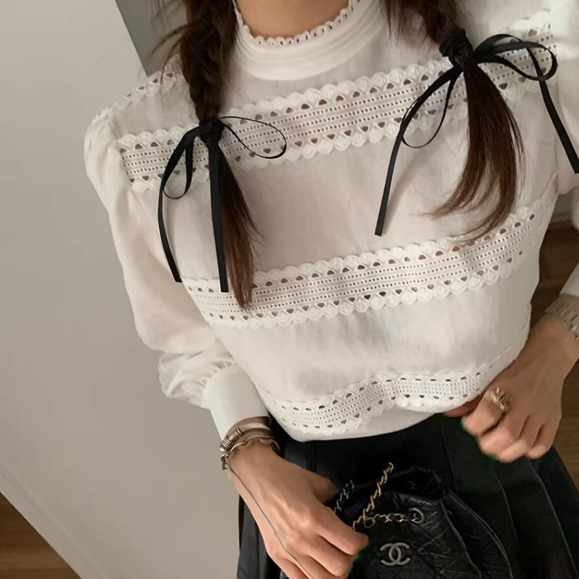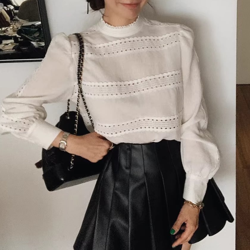 レーストリムパフスリーブシャツ