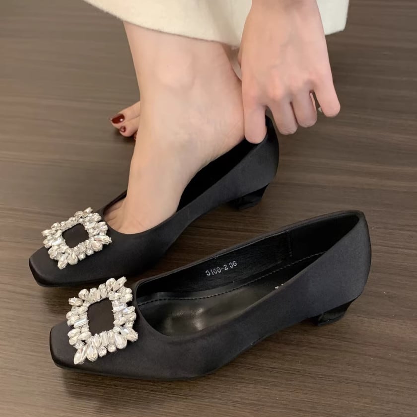 Square rhinestone pumps A1653