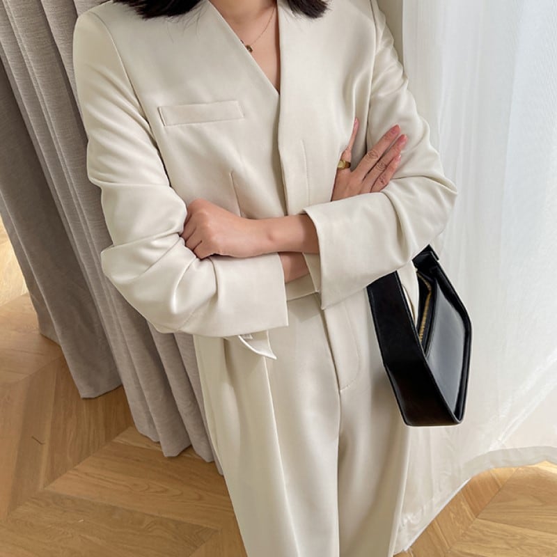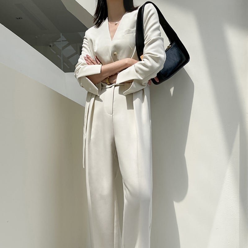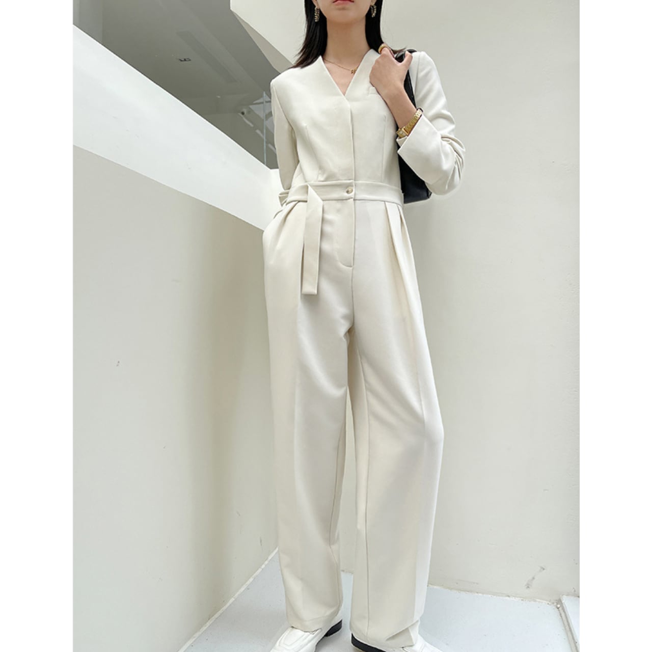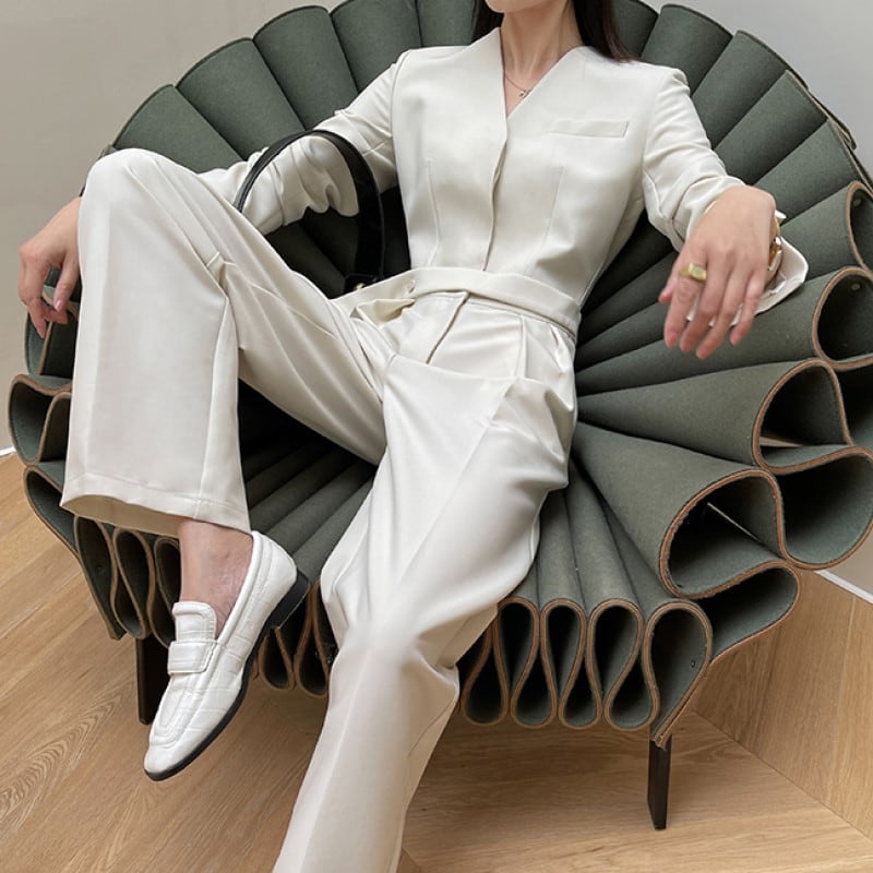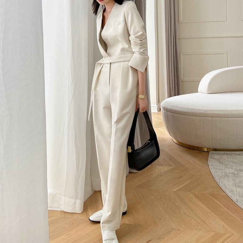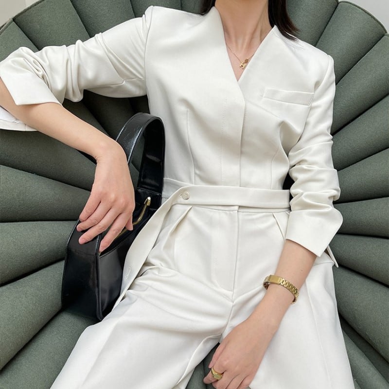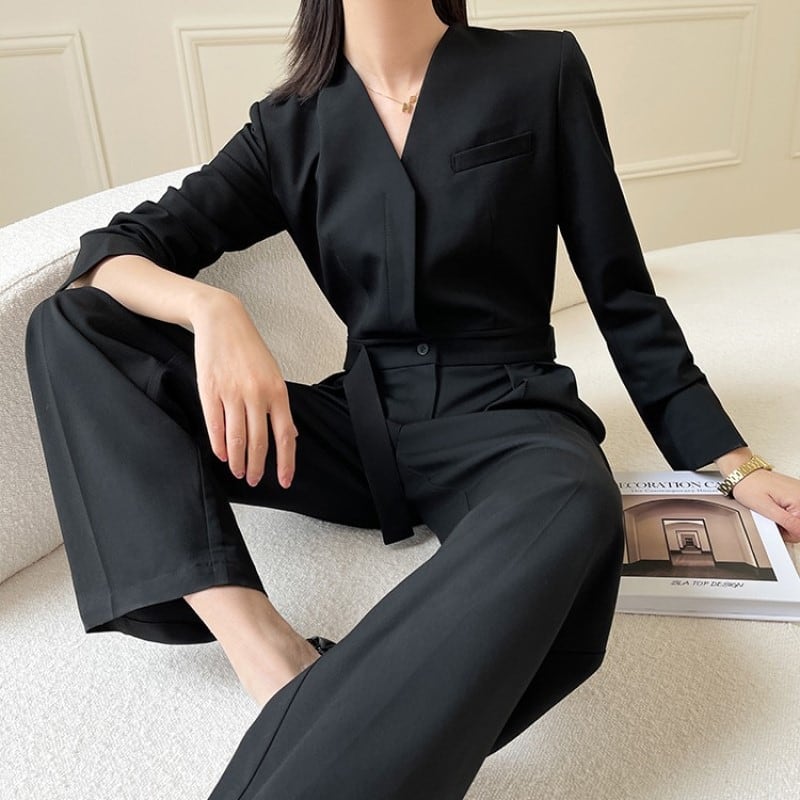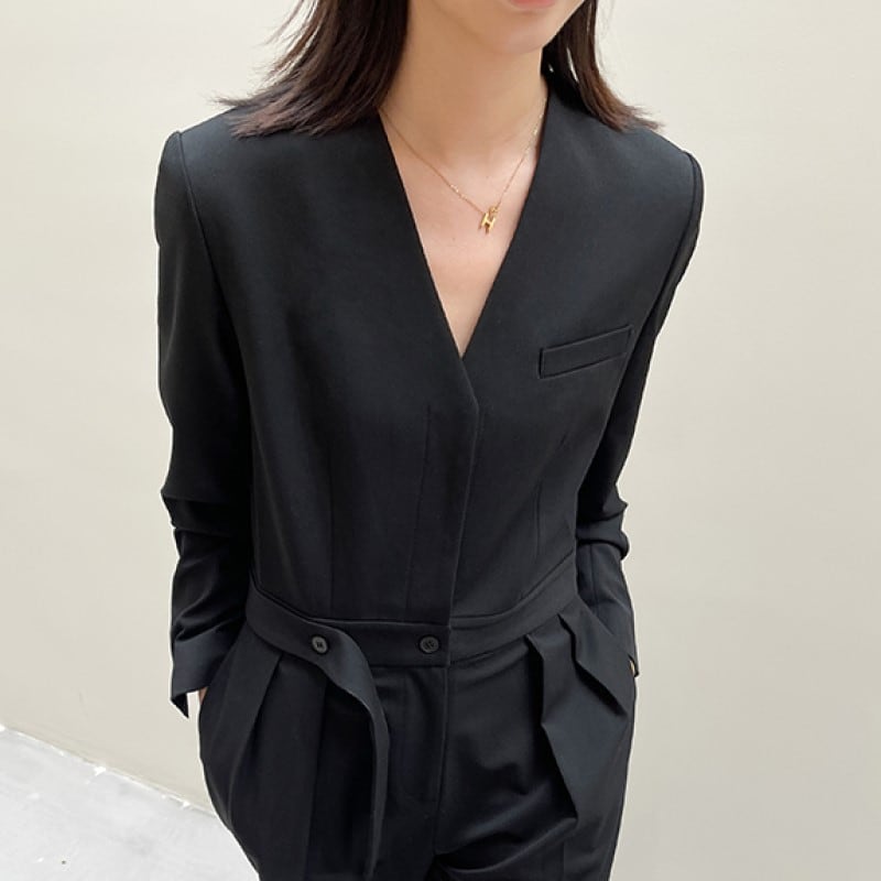 Vネックスリムジャンプスーツ