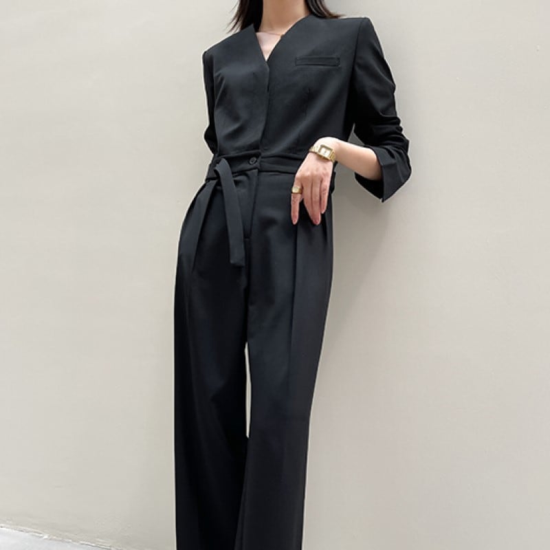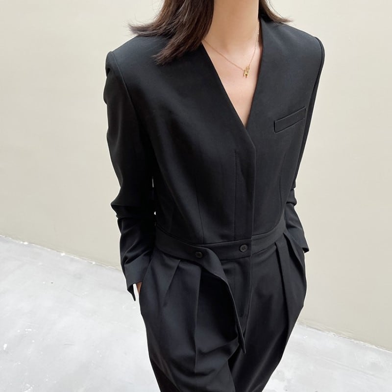 【即納商品ブラックMサイズ1点入荷!】V-neck slim jumpsuit A117