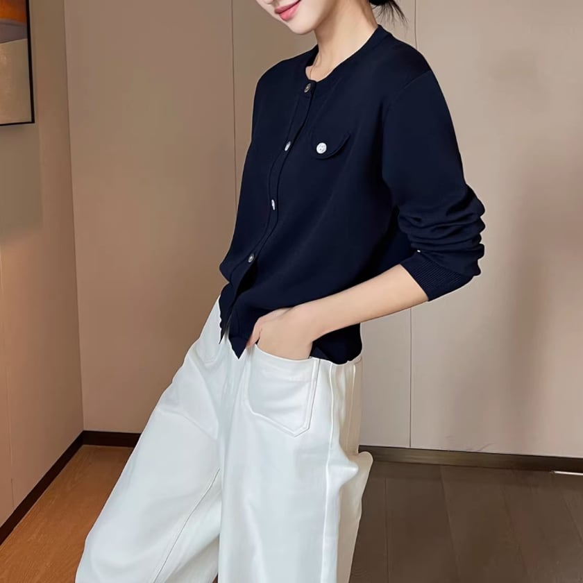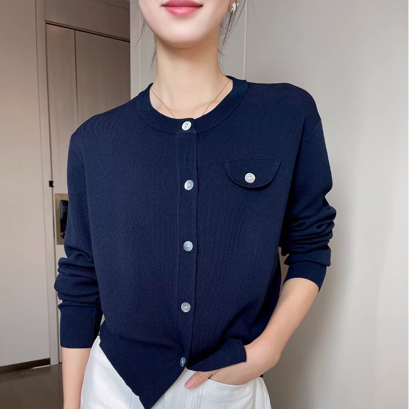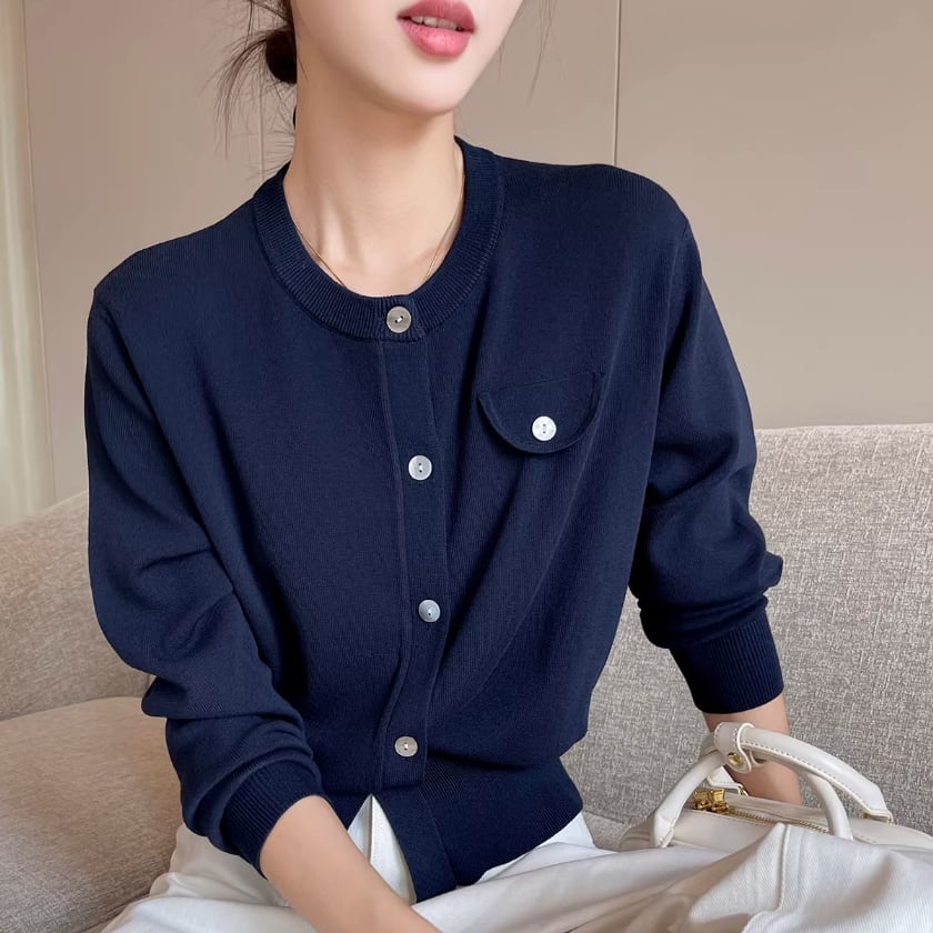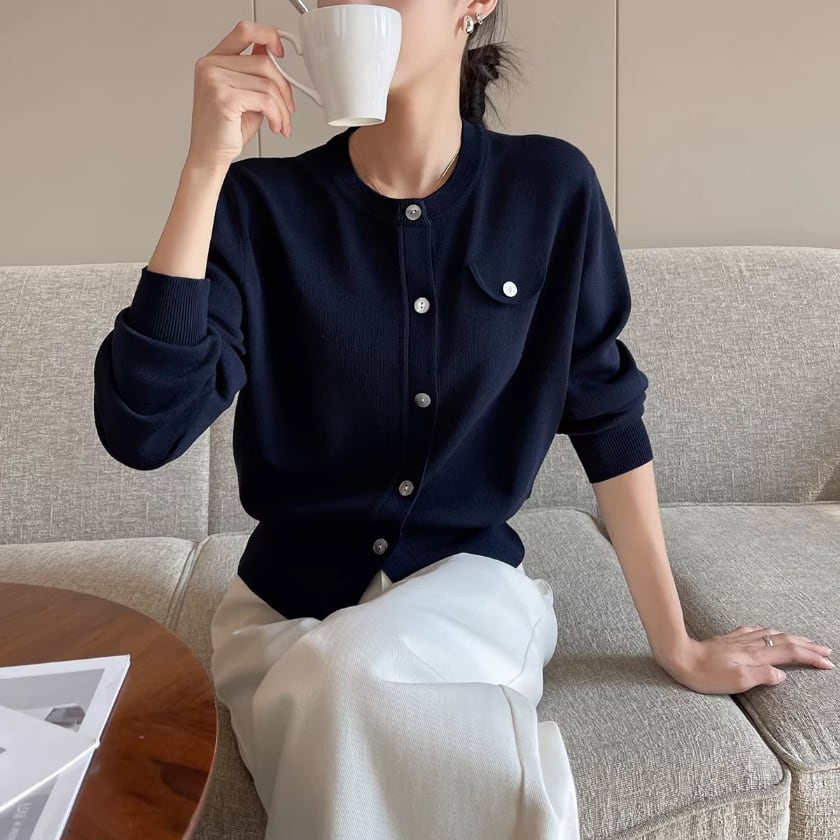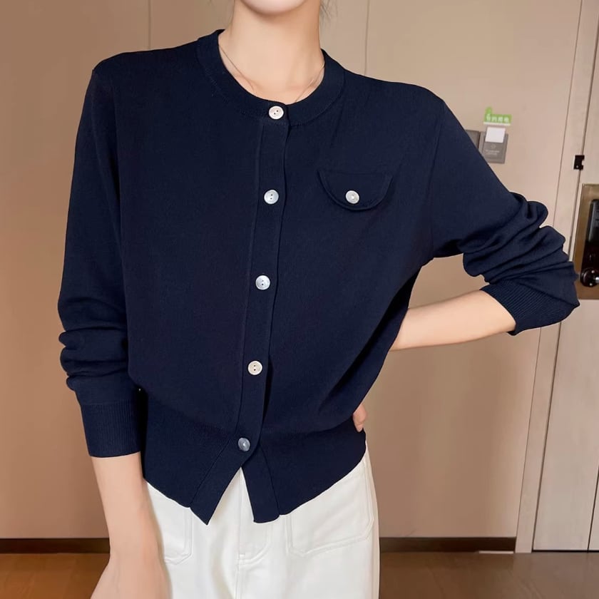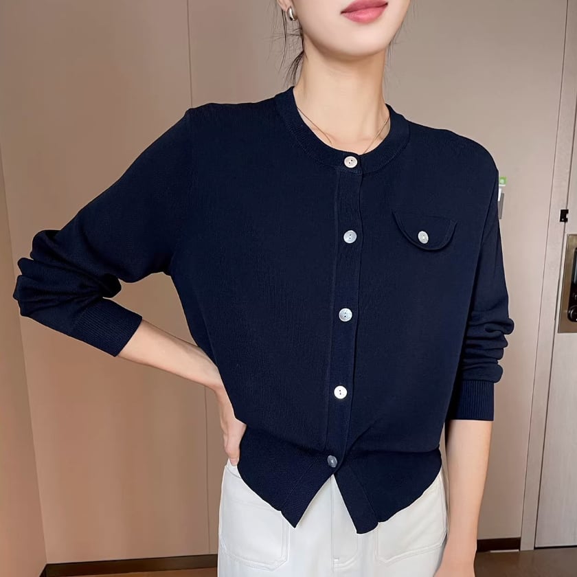Crew neck knit cardigan