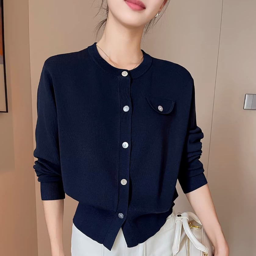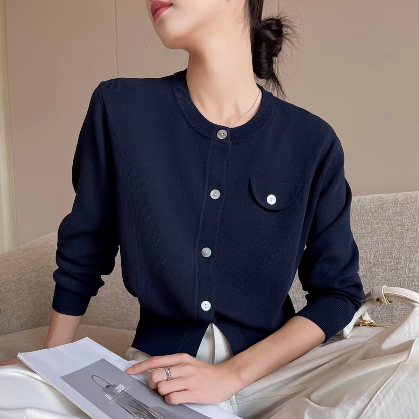 Crew neck knit cardigan A1661