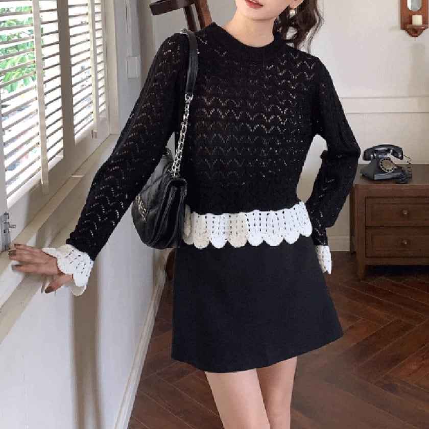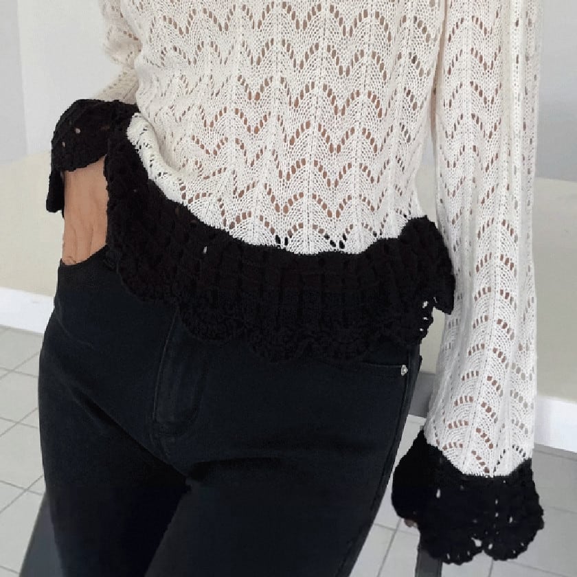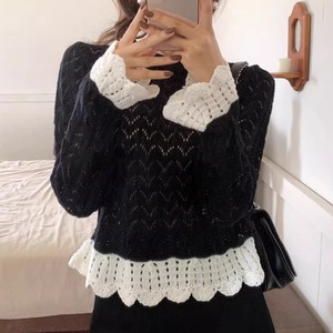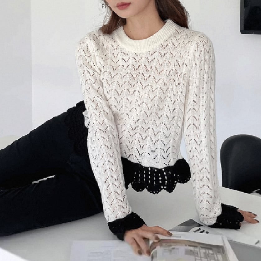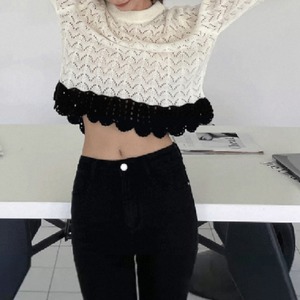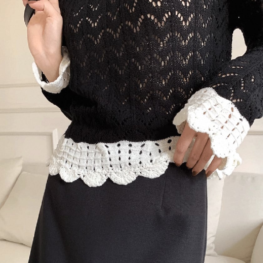 バイカラークロシェスカラップニット