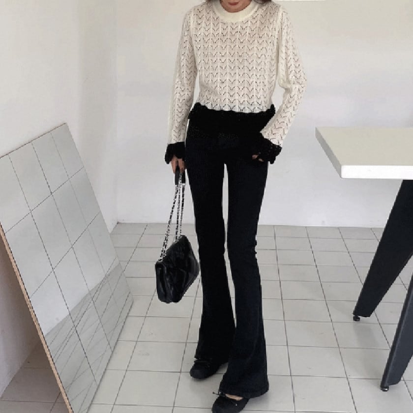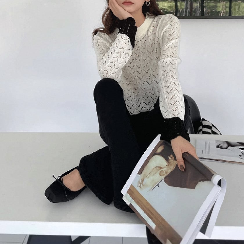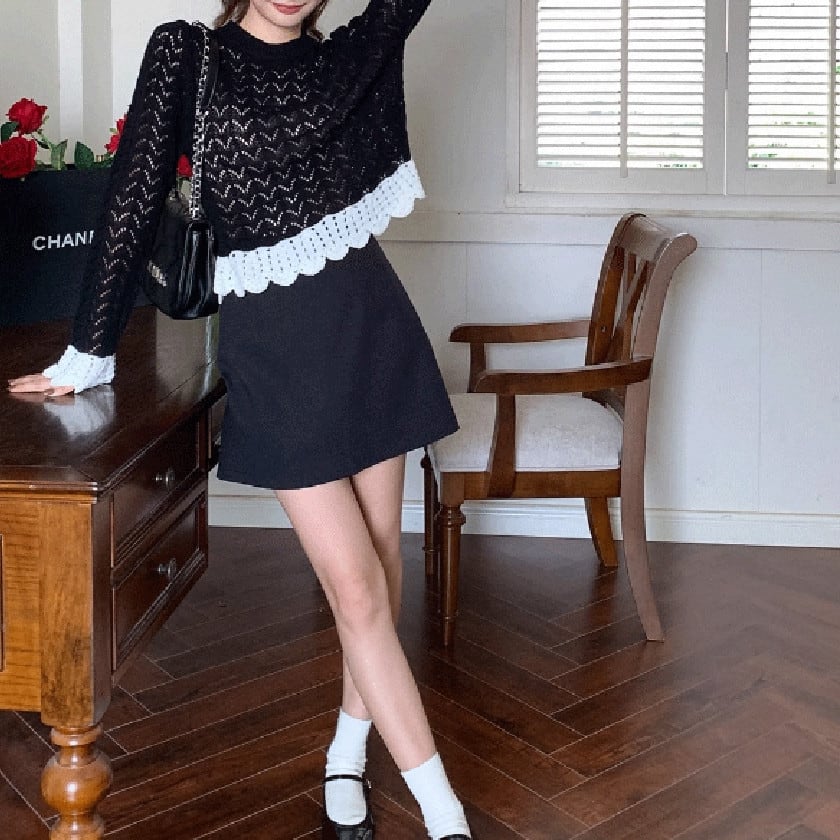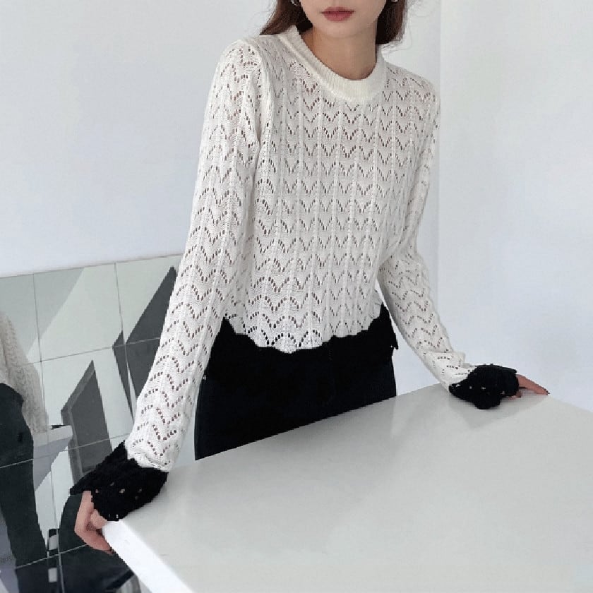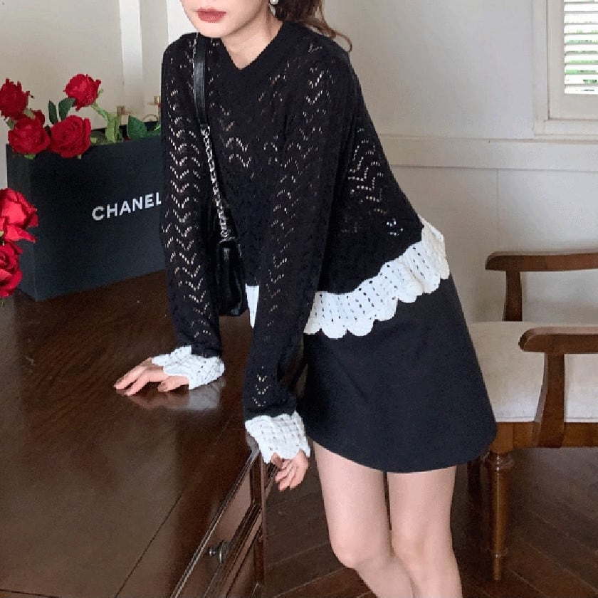バイカラークロシェスカラップニット