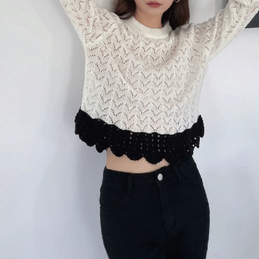 Bicolor crochet scalloped knit A1667