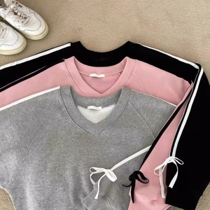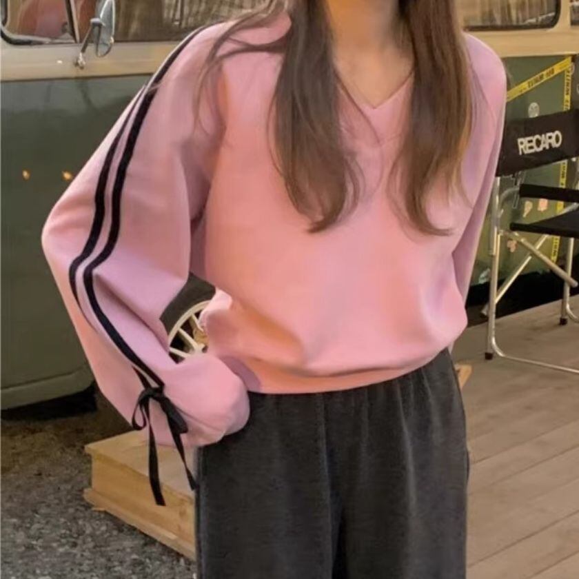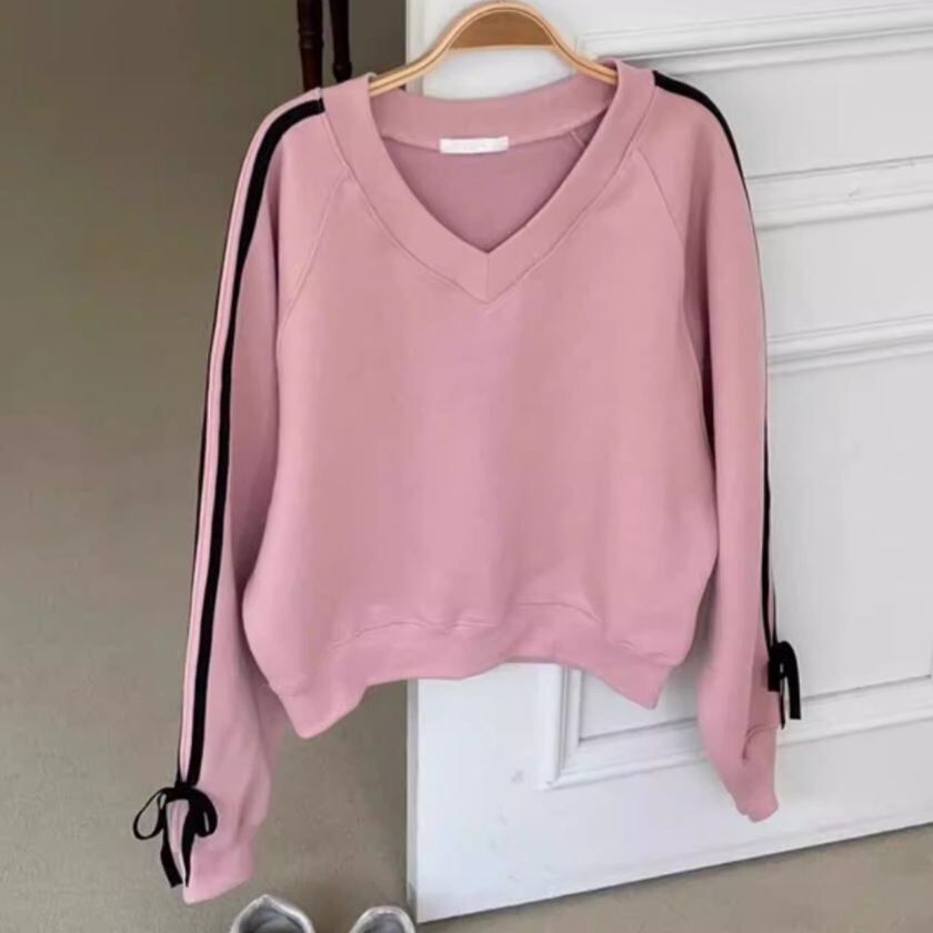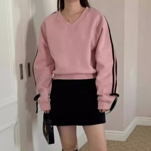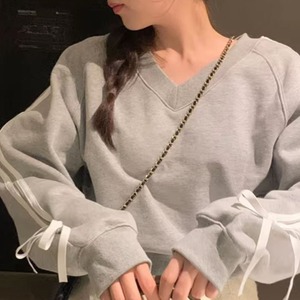 Ribbon sleeve V-neck sweat A1670