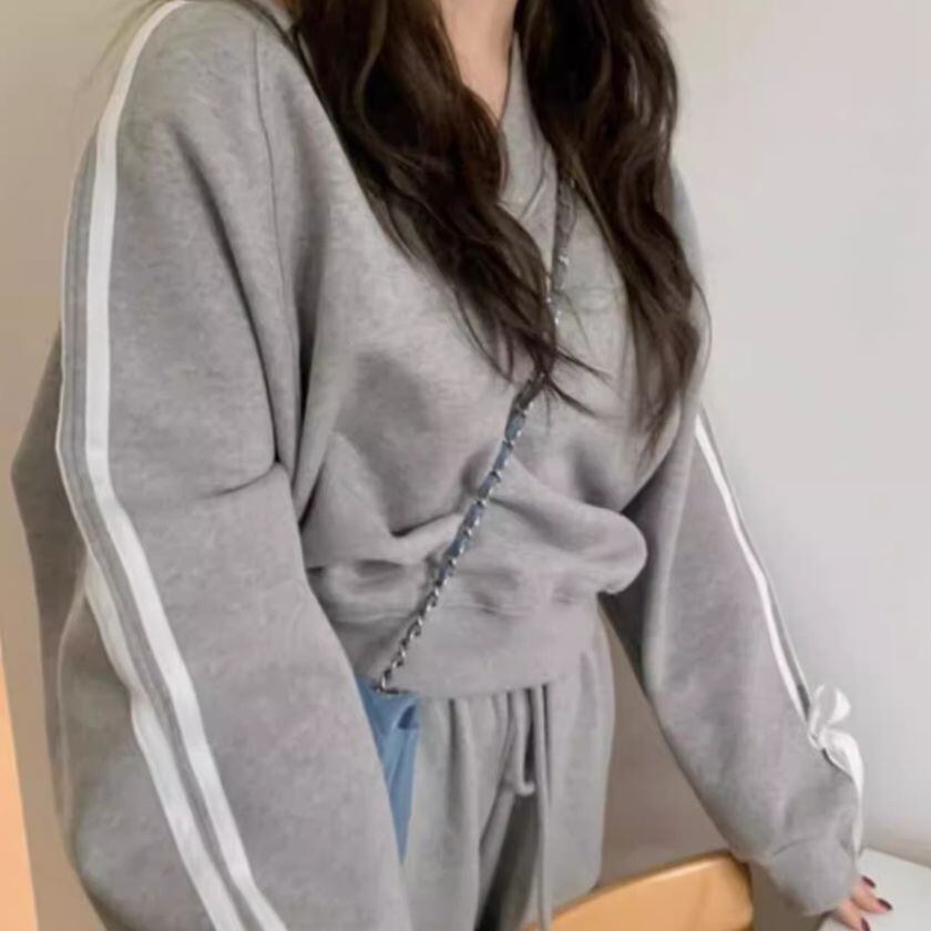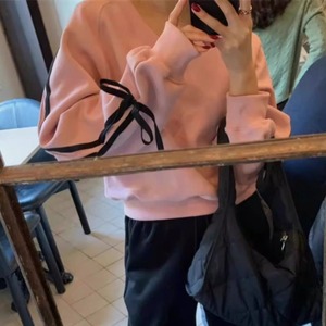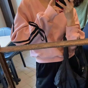 リボンスリーブVネックスウェット