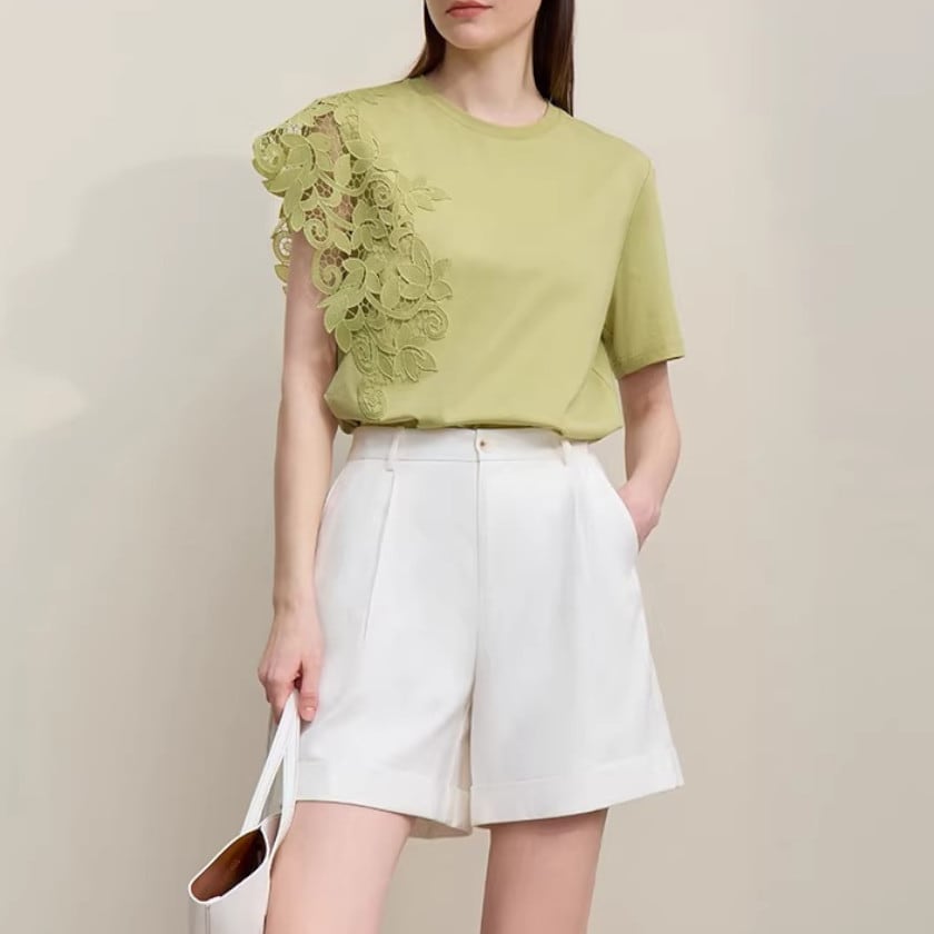 L:胸囲 100 / 着丈 60 / 肩幅 40 / 袖丈 23 / ウエスト 103 / 裾周 105 / 袖幅 35.4 / 袖口 33.9