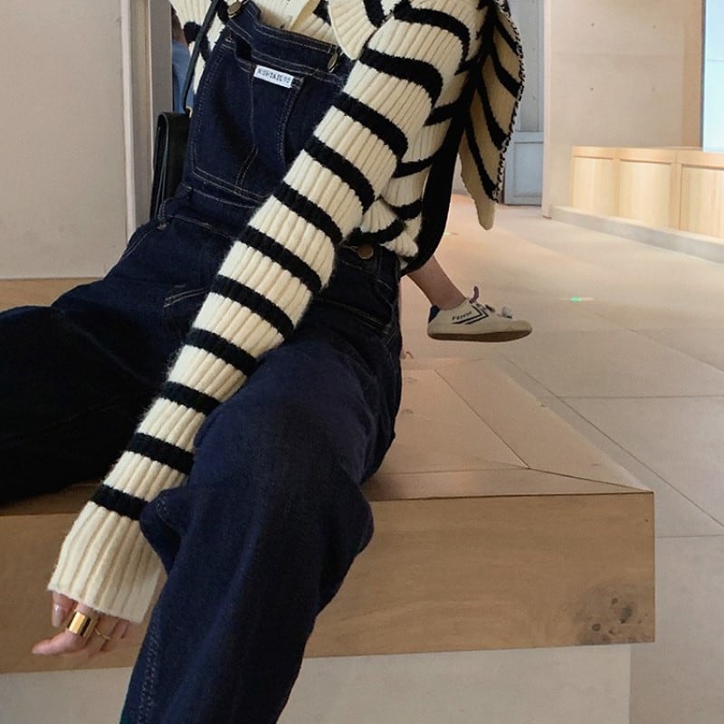 ハイウエストコットンデニムレトロサロペット