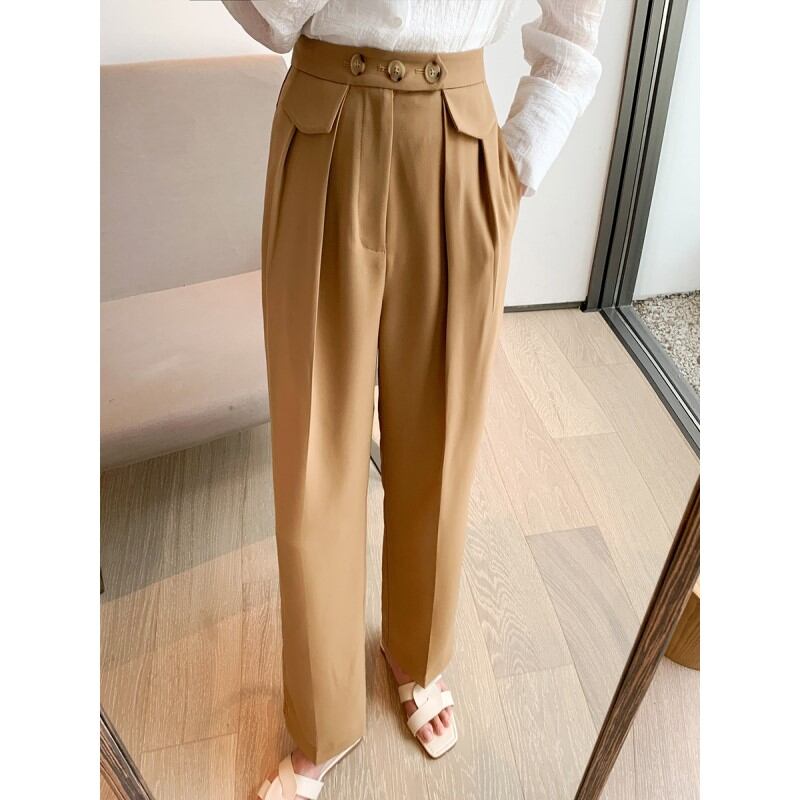 High waist front button design pants