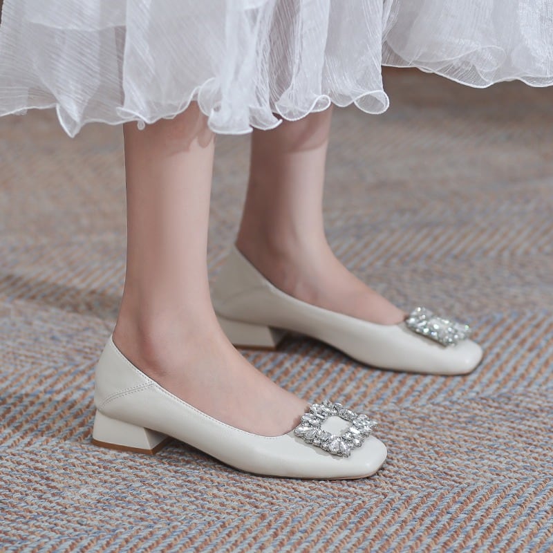 Square bijou low heel pumps A325