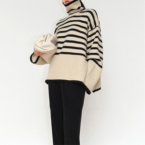 Striped turtle neck tunic knit A425