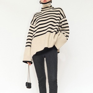 ボーダータートルネックチュニックニット