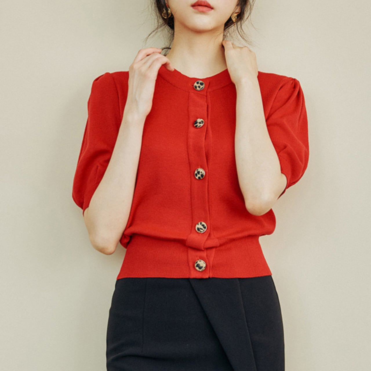 Leopard button summer knit cardigan A607
