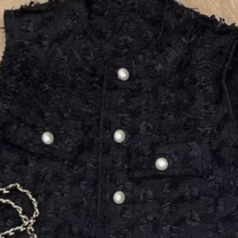 Pearl button tweed fringe gilet A753