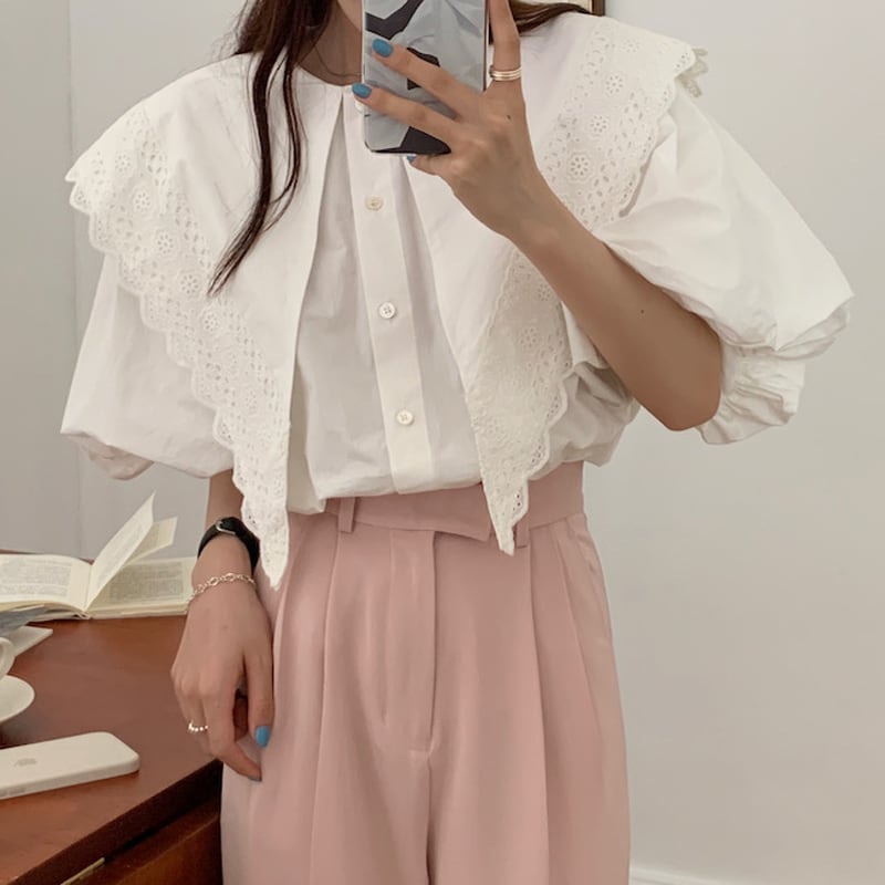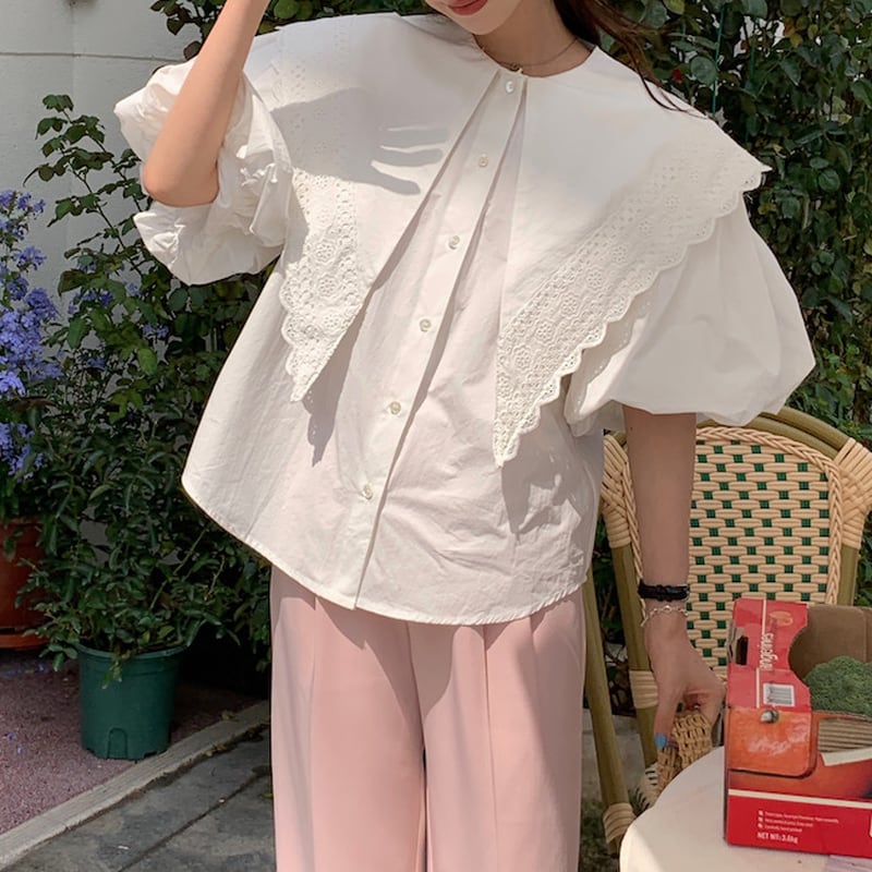 Big lace collar volume sleeve blouse