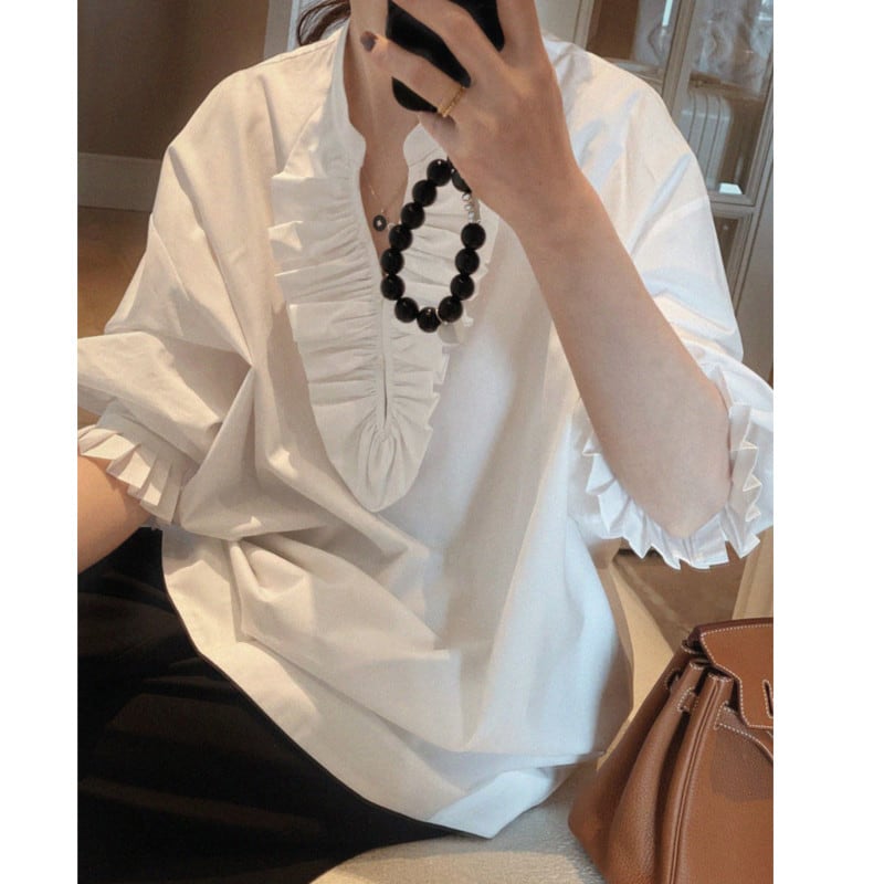Front frill loose blouse