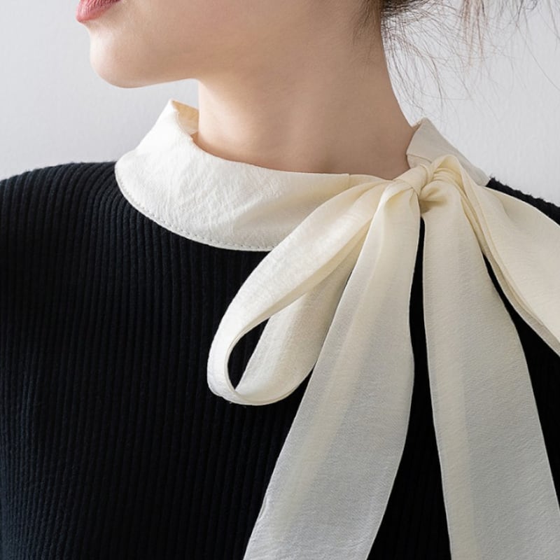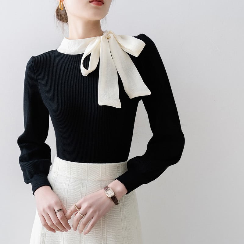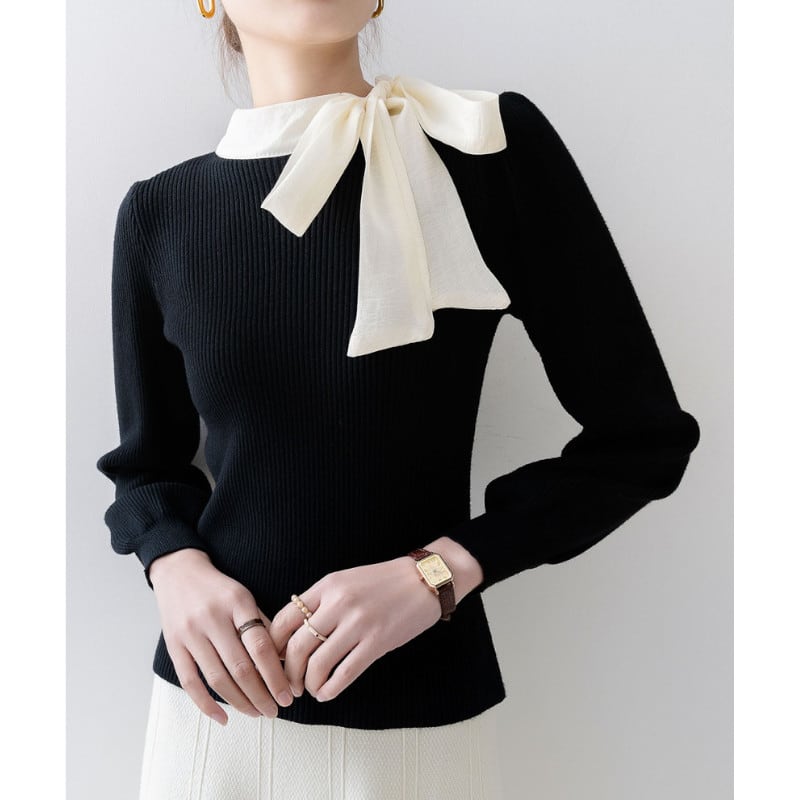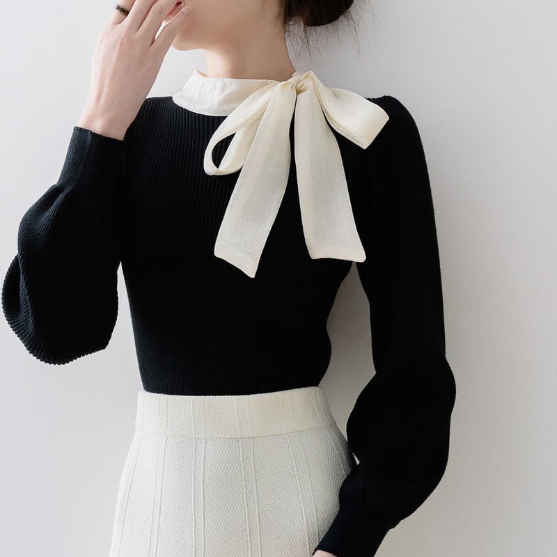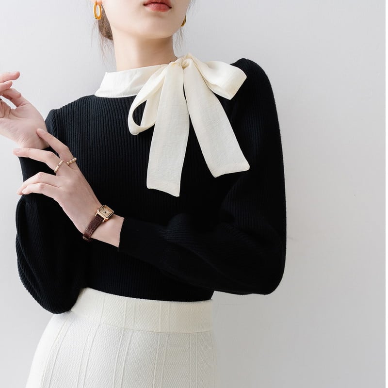 ハイネックリボンリブニットセーター