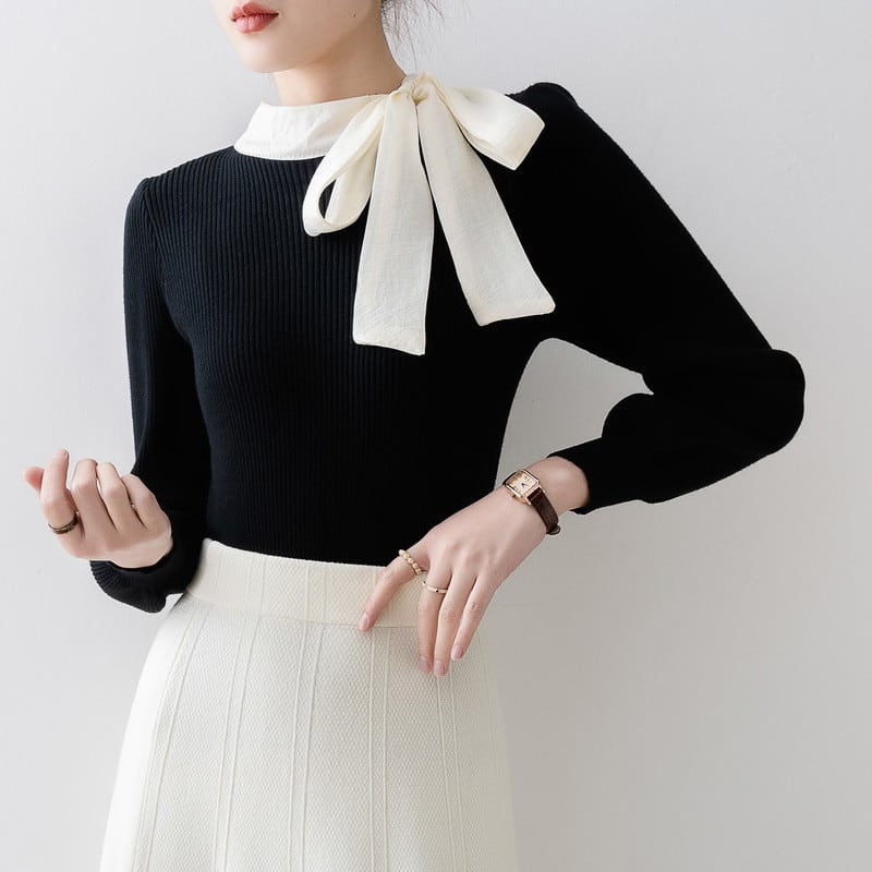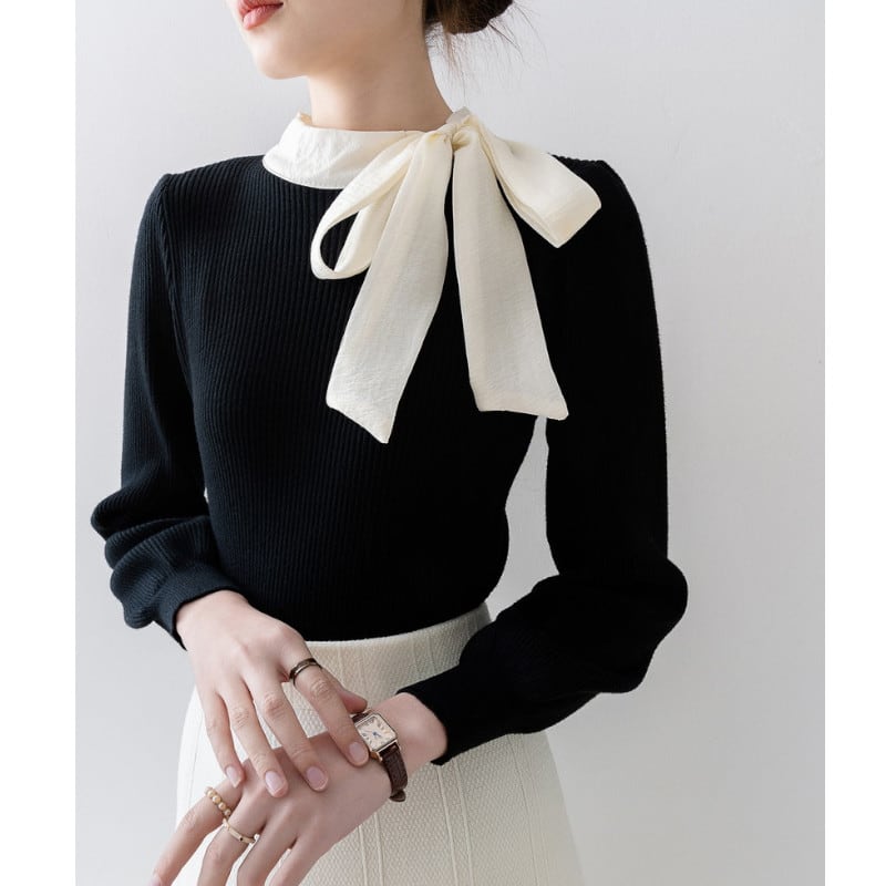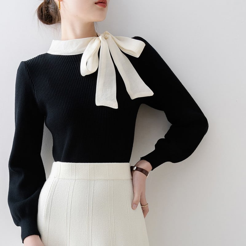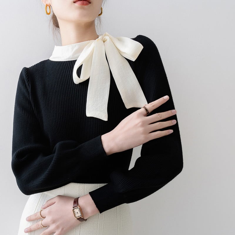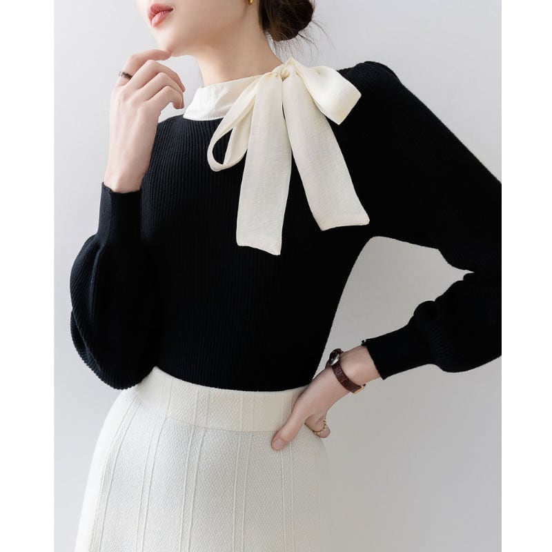 ハイネックリボンリブニットセーター